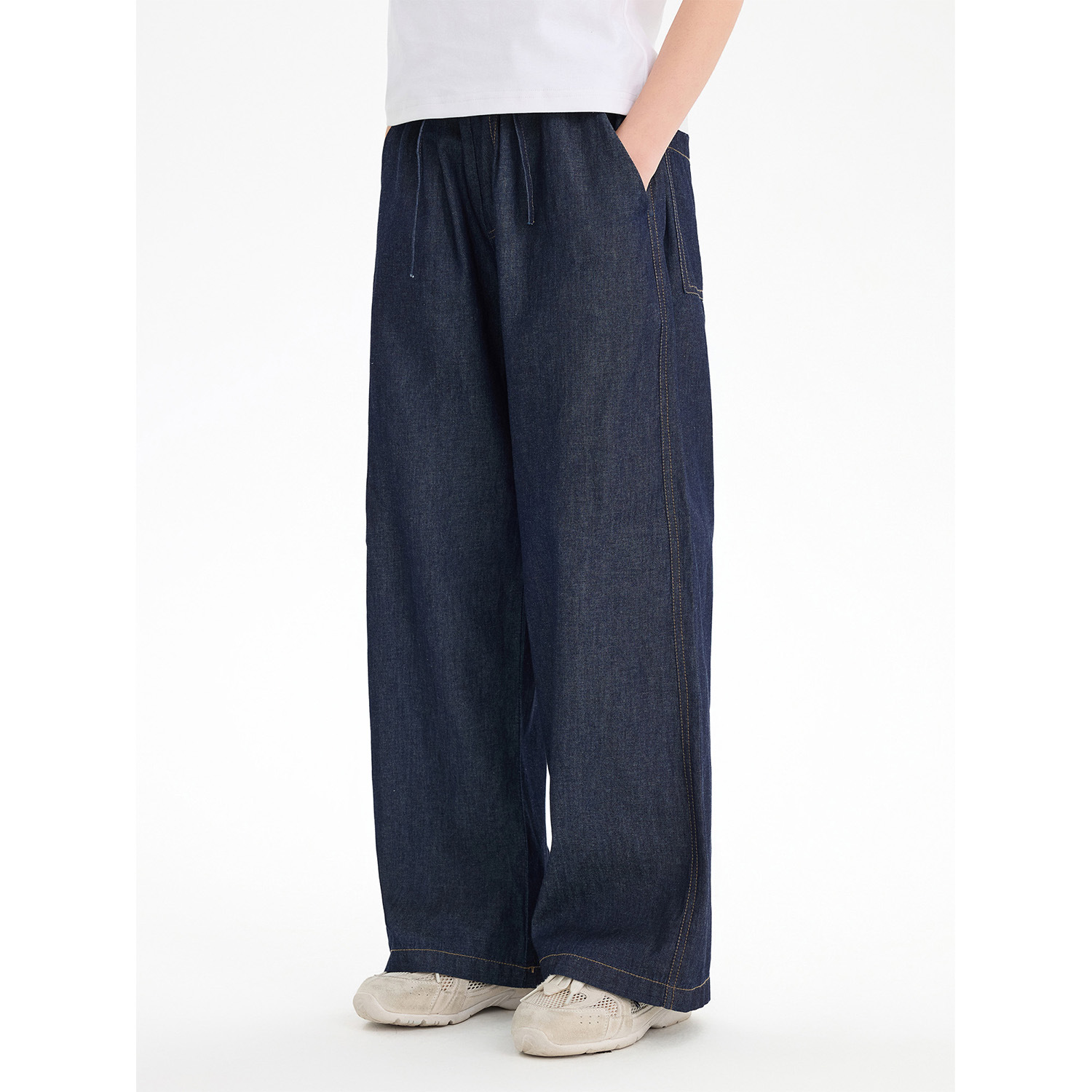소녀의 얇은 텐셀 청바지 2025 여름 새로운 어린이 세척 캐주얼 스트레이트 다리 바지 느슨한 넓은 다리 바지