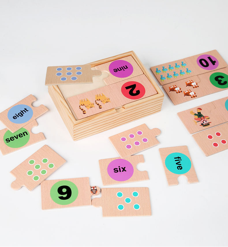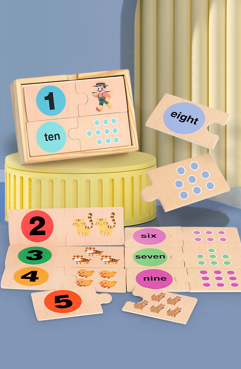 국경 초기 교육 디지털 계몽주의 일치하는 나무 상자 퍼즐 어린 아이들 디지털 분해인지 매칭 나무 장난감스토어 가기