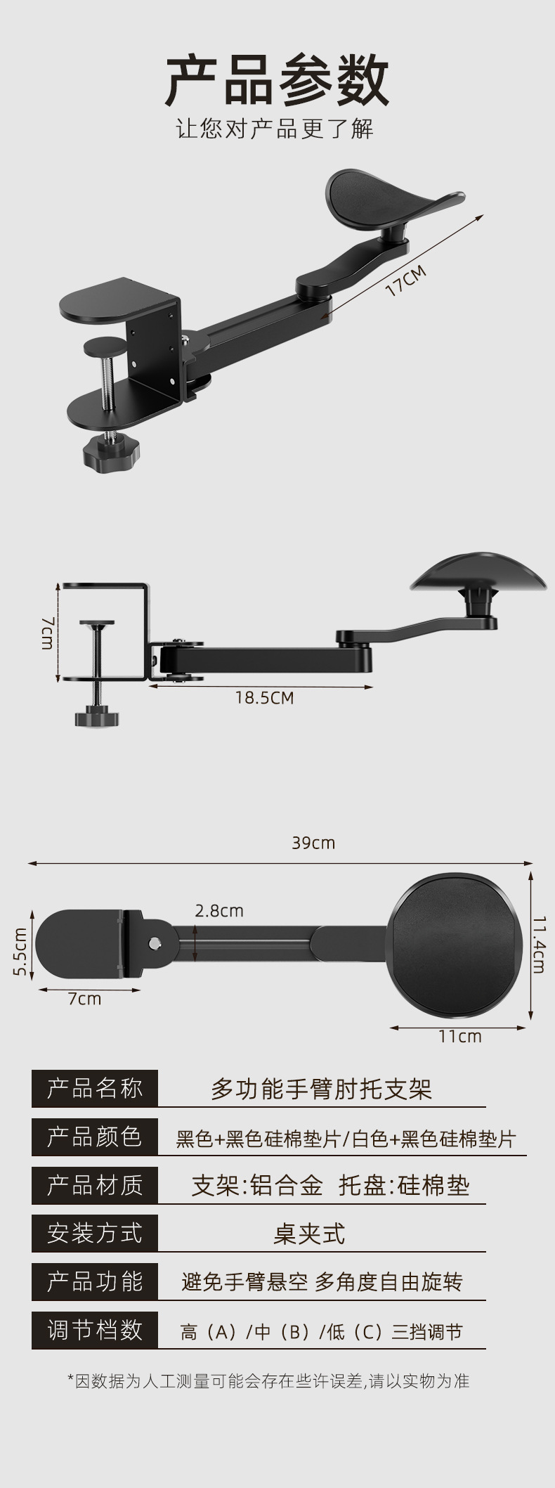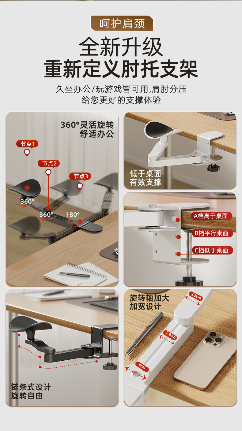 인체공학적 데스크탑 팔꿈치 받침대 확장 스탠드 테이블 마우스 패드 손목 보호대 팔 받침대 무타공