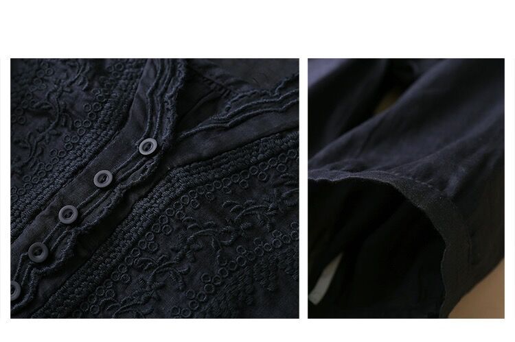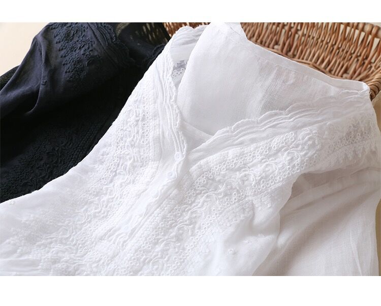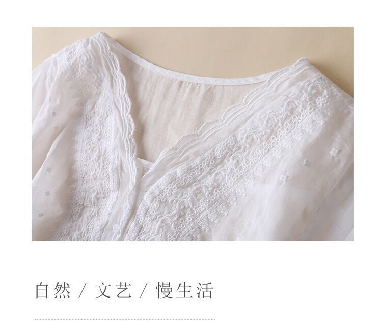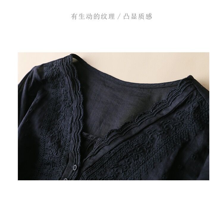 2025 여름 문학 복고풍 린넨 반팔 셔츠 기질 자수 v 넥 코튼 린넨 탑 여성용스토어 가기