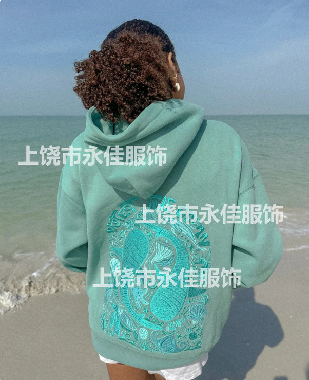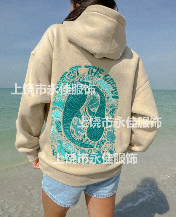 국경 간 대외 무역 아마존 어깨 소매 기모 긴 소매 후드 풀오버 스포츠 레저 프린트 스웨터 탑스토어 가기