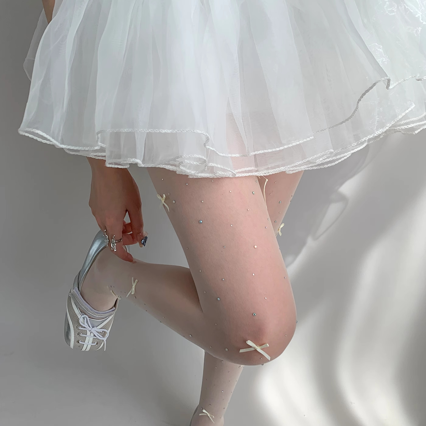 다이아몬드 발레 바람과 함께 흰색 실크 스타킹 실크 팬티 스타킹 어린이 활 순수한 흰색 실크 얇은스토어 가기