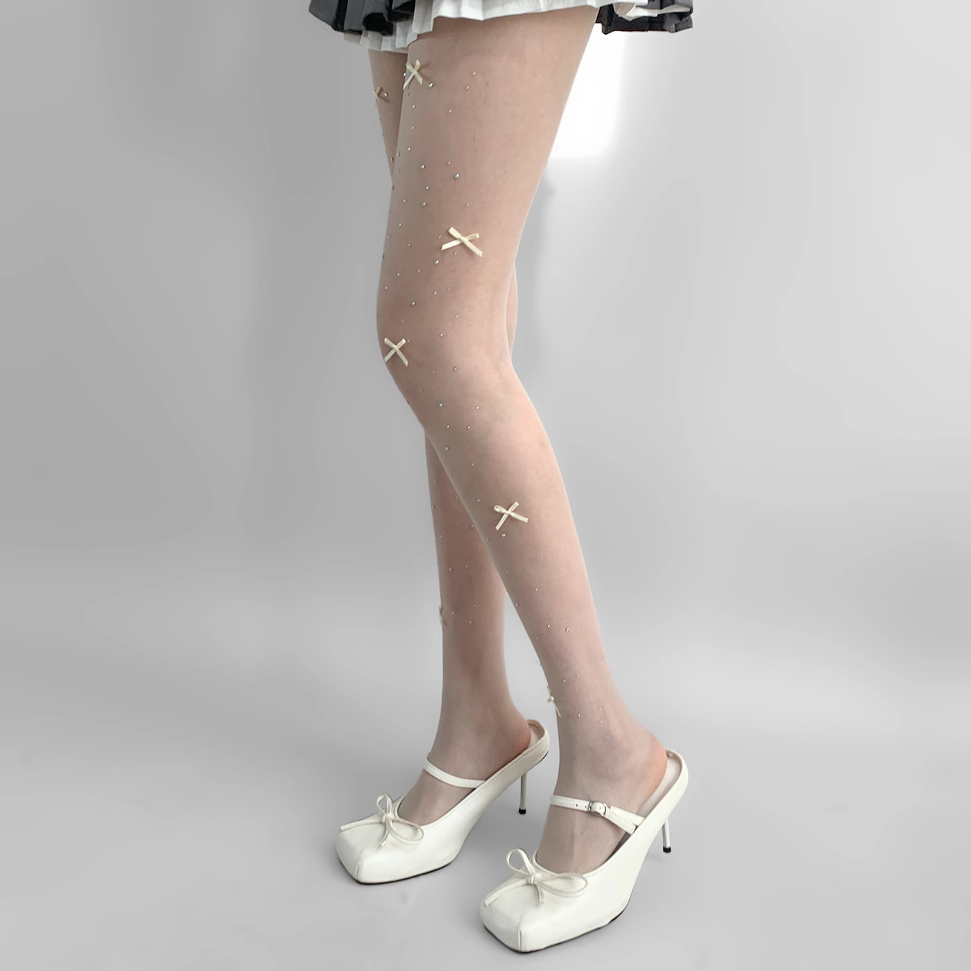 • 레이스 서스펜더 보우 피쉬넷 스타킹 화이트