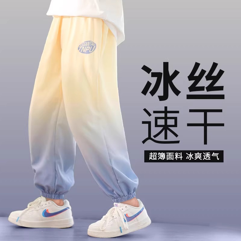 소년 얼음 실크 빠른 건조 캐주얼 바지 여름 어린이 2025 새로운 여름 모기 방지 바지 큰 어린이 스포츠 바지 아동복스토어 가기