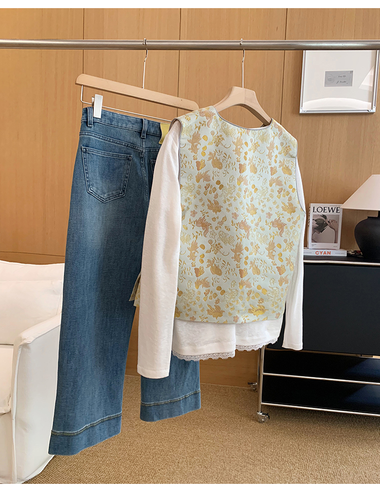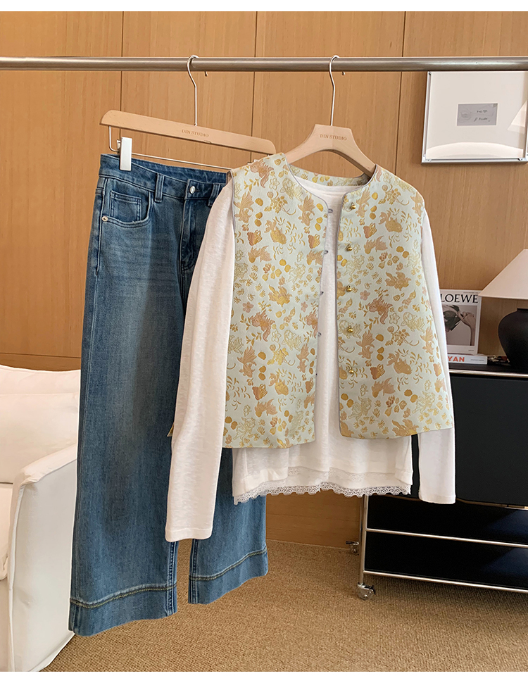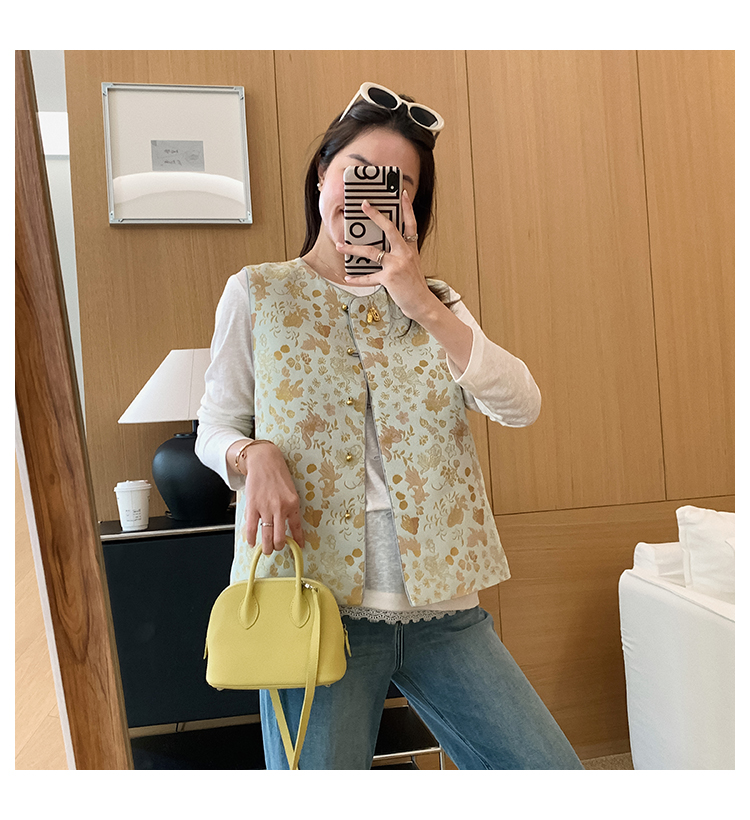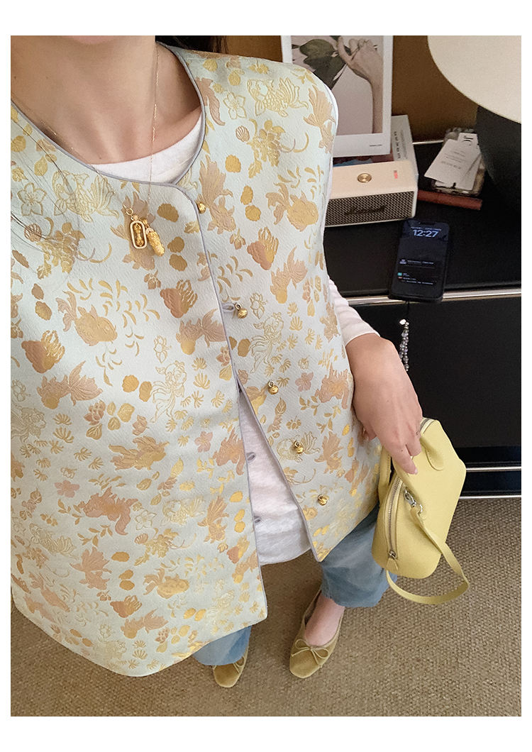 赋美东方织金金鱼水藻纹提花国风马甲!#