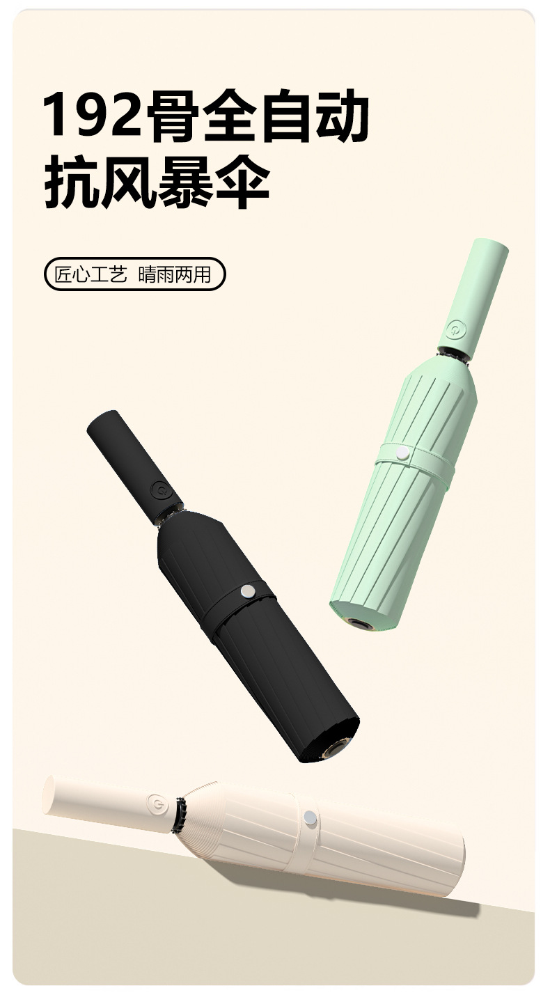 • 민트 그린 [192 유리 섬유 방풍 우산 갈비뼈, 강화 강화, 비가 오나 눈이 오나 사용 가능] 완전 자동 [원 클릭 개폐]