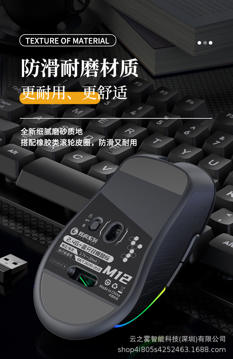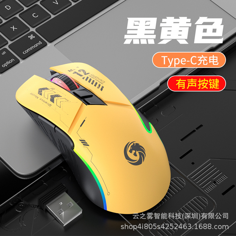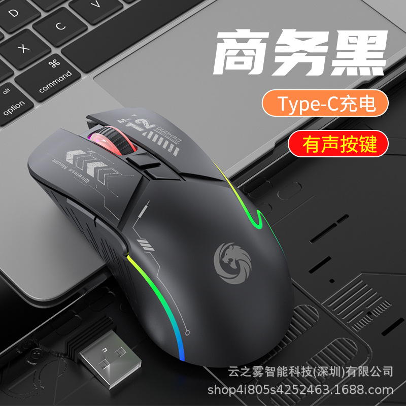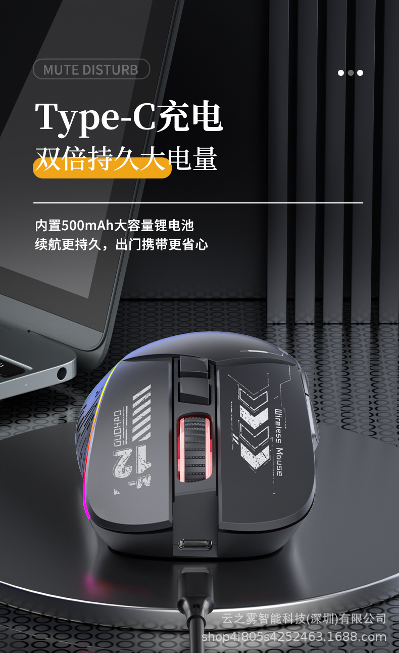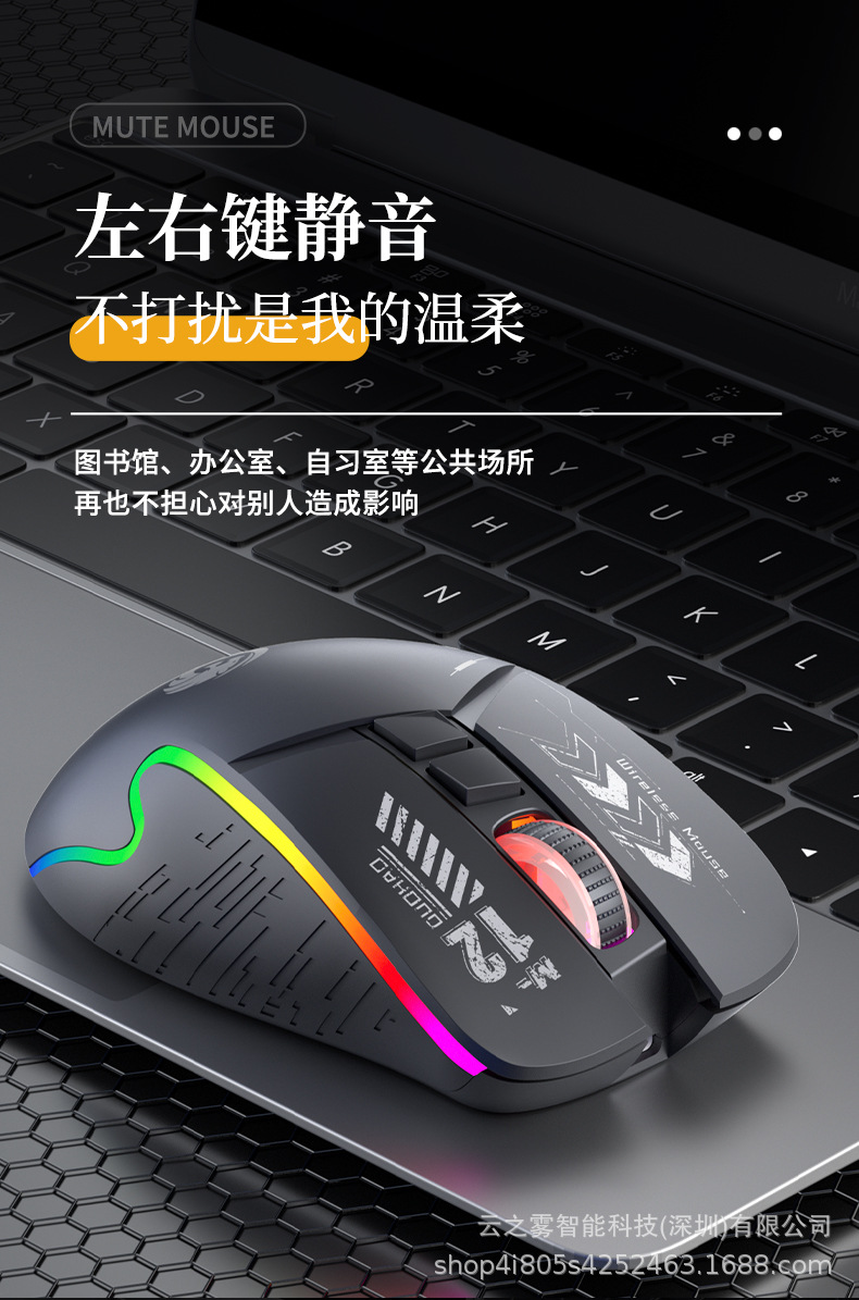 메카 스타일 게임용 마우스 무선 블루투스 듀얼 컴퓨터 충전식 무음 사무실 다채로운 빛나는