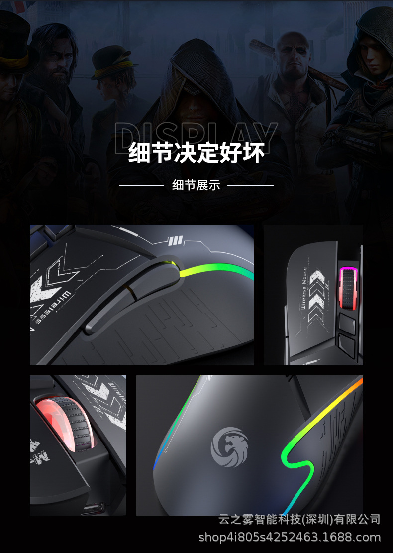 메카 스타일 게임용 마우스 무선 블루투스 듀얼 컴퓨터 충전식 무음 사무실 다채로운 빛나는스토어 가기