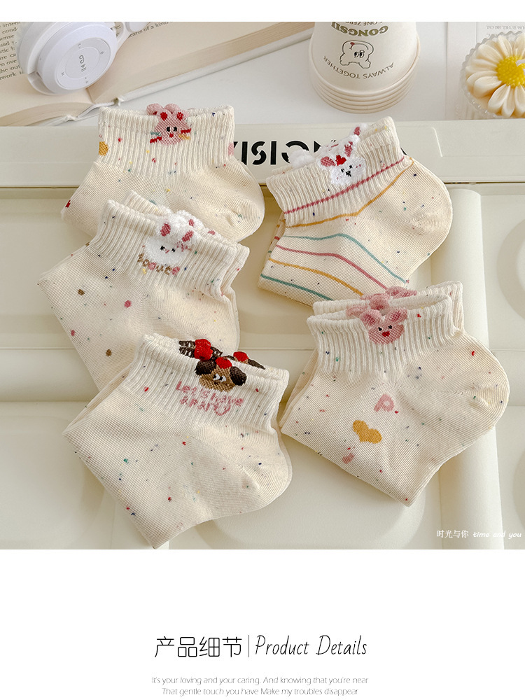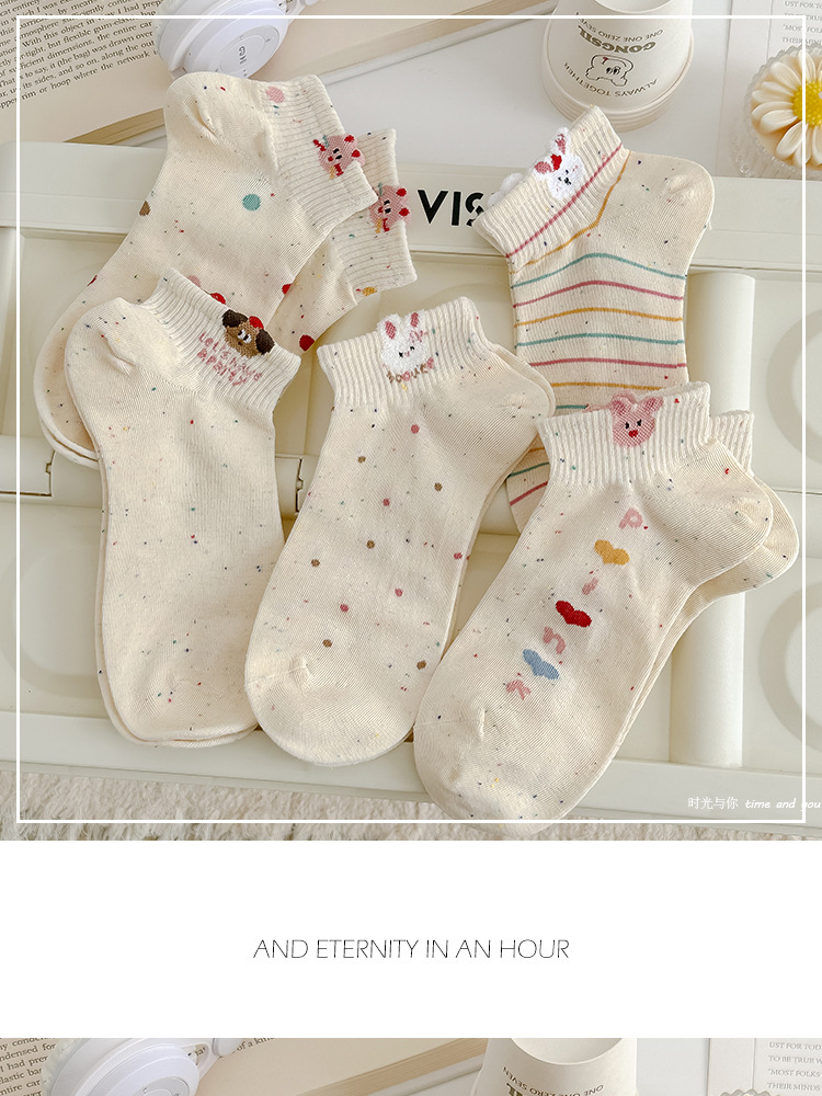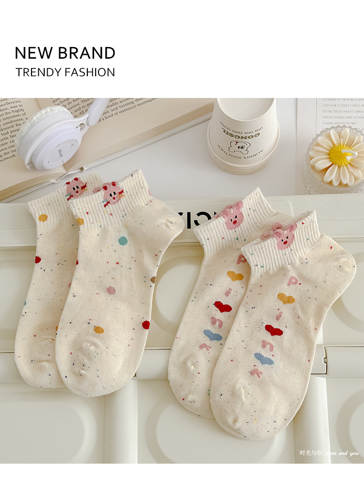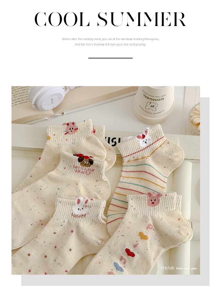 양말 여성용 아이디어 원사 양말 만화 토끼 보트 양말 봄 여름 귀여운 일본 유행 양말 면 통기성 땀 흡수스토어 가기
