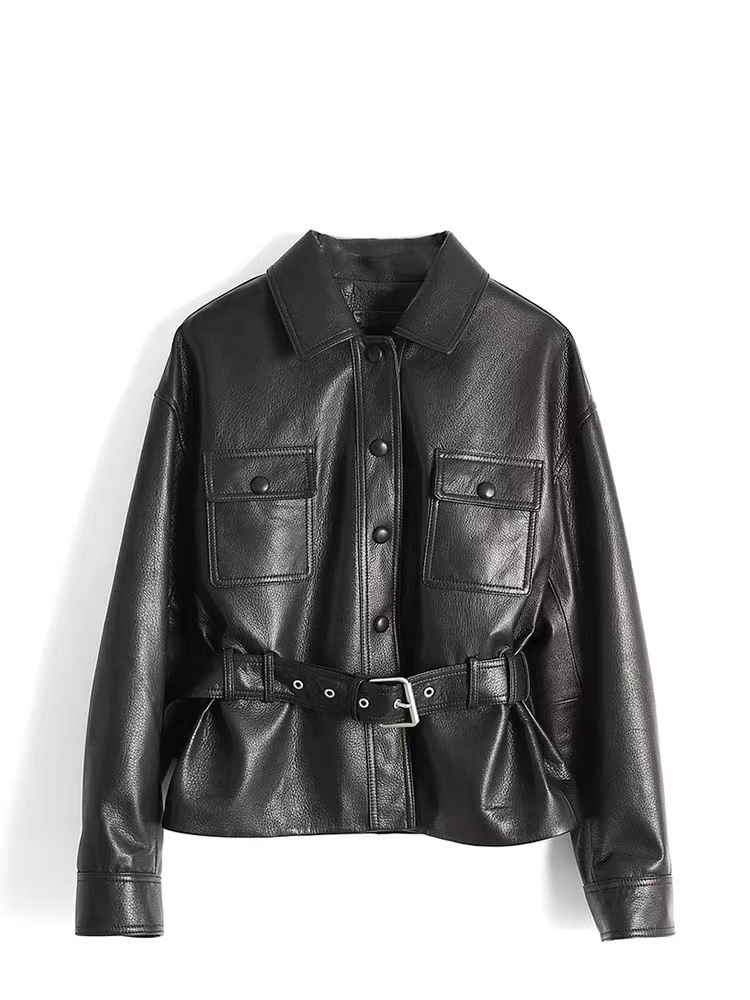 송가와 같은 스타일의 여성용 가죽 코트, 2025 봄 가을 신상 허리 슬리밍 오토바이 가죽 자켓 탑스토어 가기