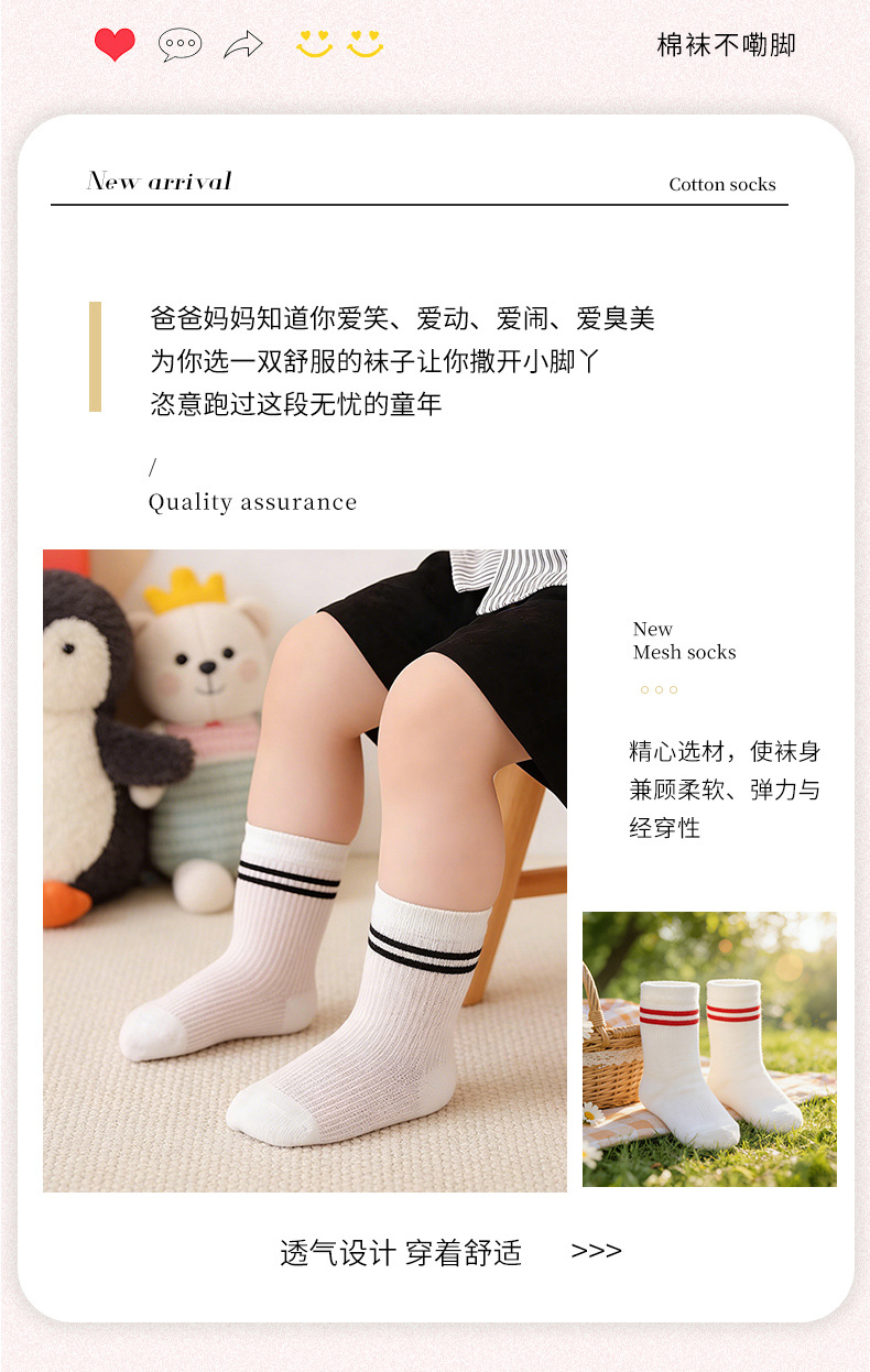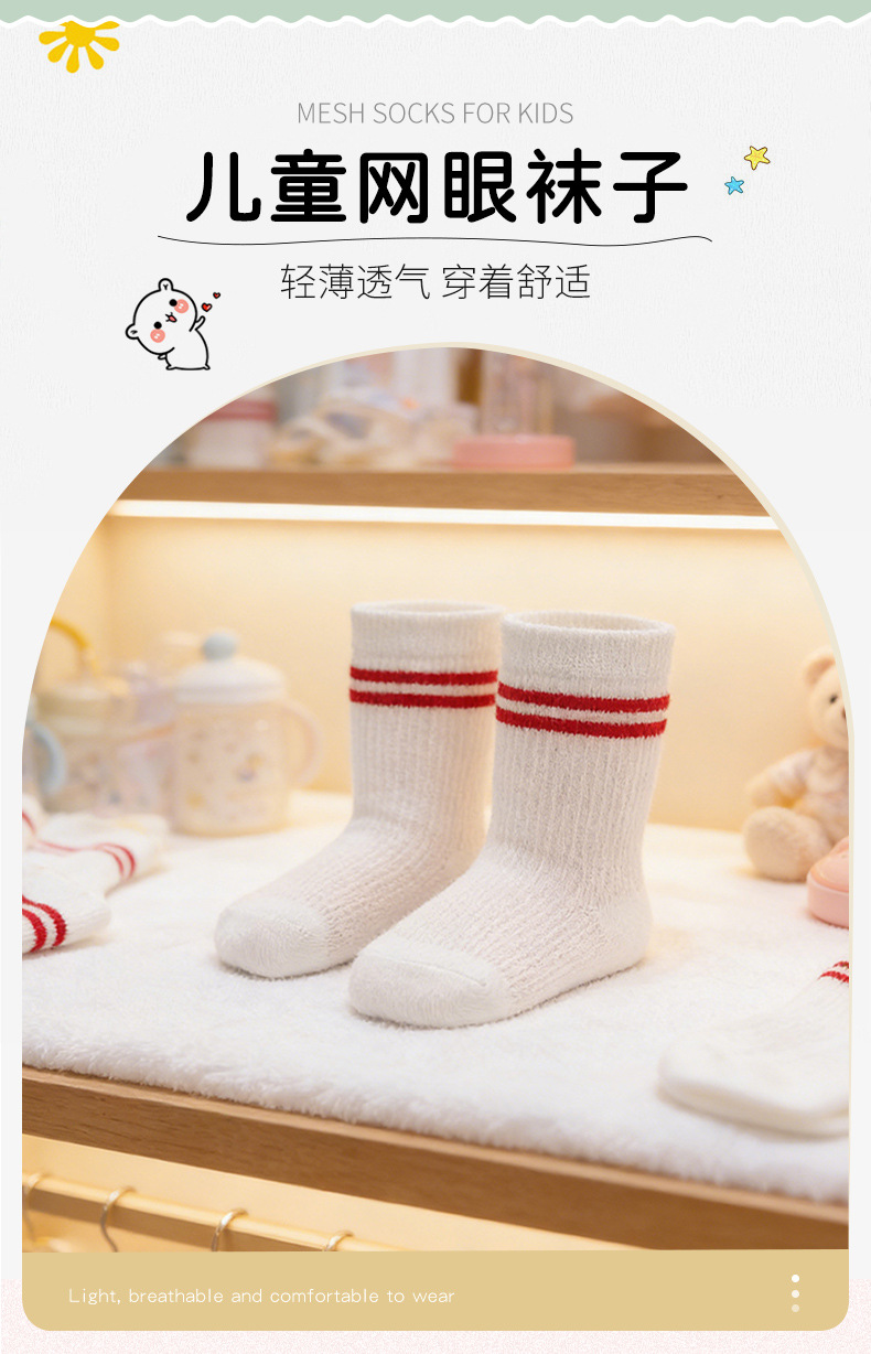 어린이 스타킹 여름 얇은 메쉬 통기성 아기 양말 대학 스타일 뼈없는 빗질면 줄무늬 학생 양말