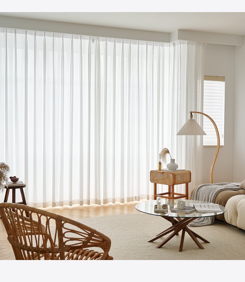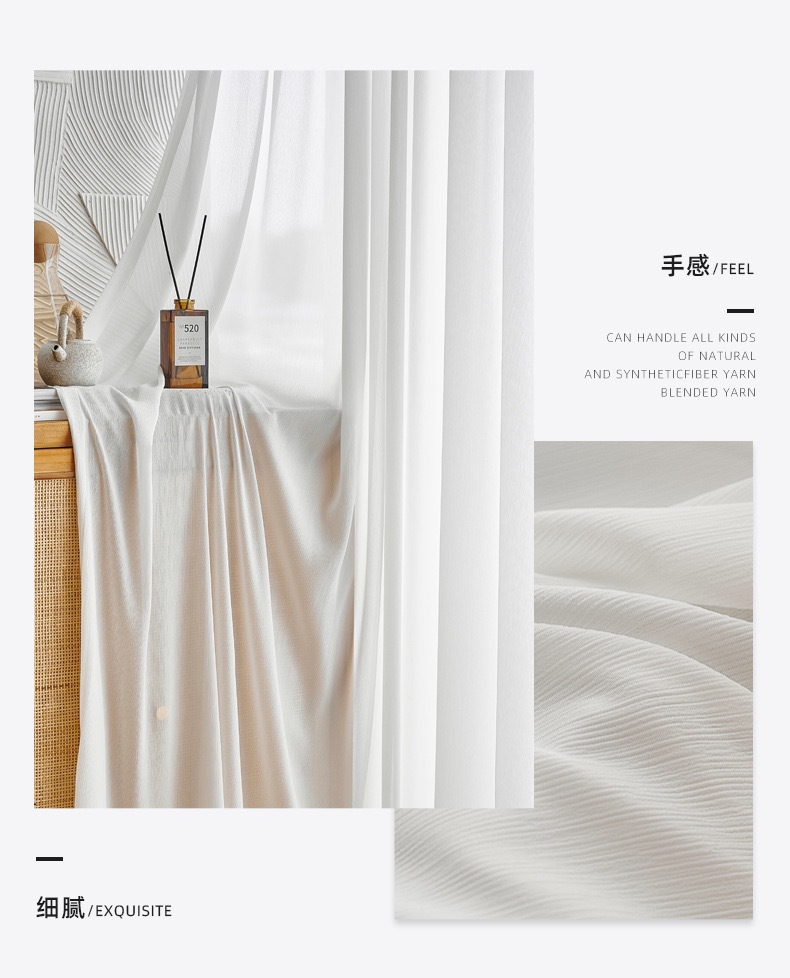 2025 새로운 주름진 쉬폰 원사 틈새 와비사비 스타일 질감 일반 반투명 꿈꾸는 거실 발코니 창 스크린