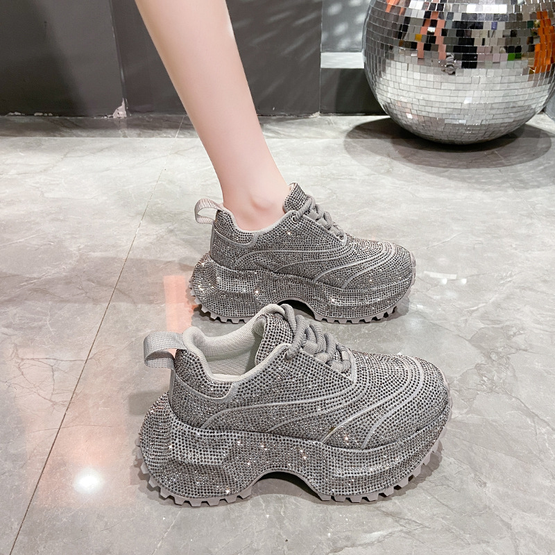 토레 신발, 슈퍼 파이어 라인 스톤 풀 다이아몬드 두꺼운 하단 플랫폼 7cm 작은 흰색 신발 캐주얼 운동화 여성 신발 트렌디스토어 가기