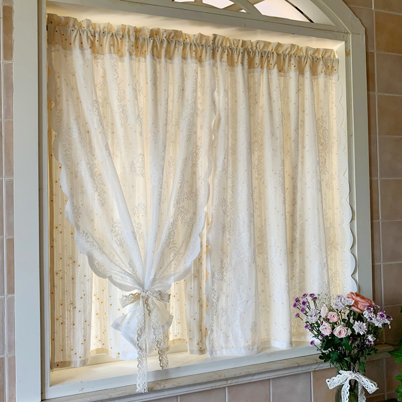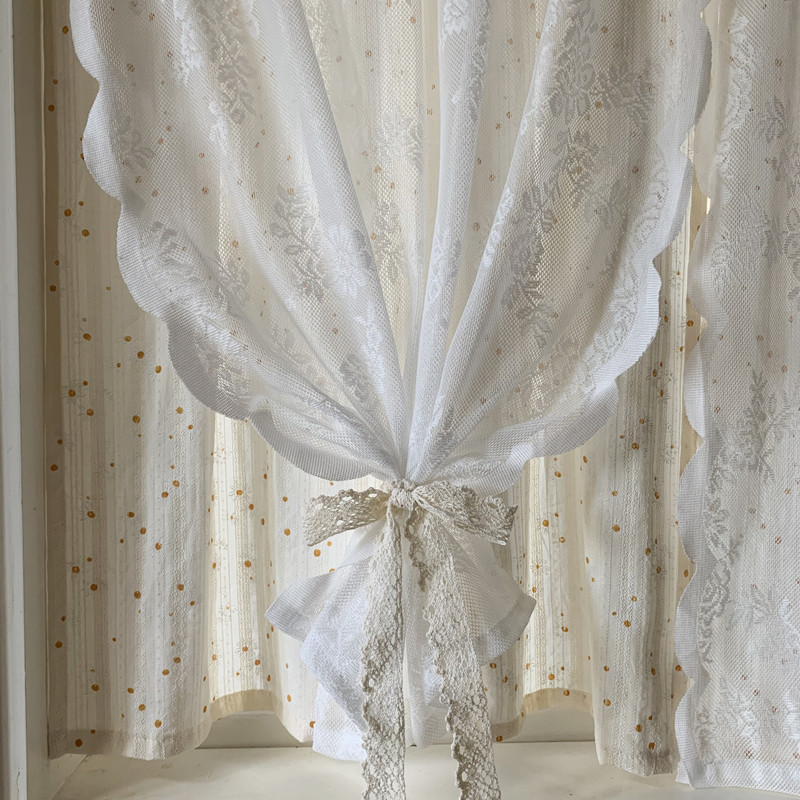 한국 전원풍 꽃무늬 데이지 레이스 커튼, 윈도우 스크린 커튼, 프렌치 더블 레이어 펀치 프리 접착식, 반투명 및 불투명