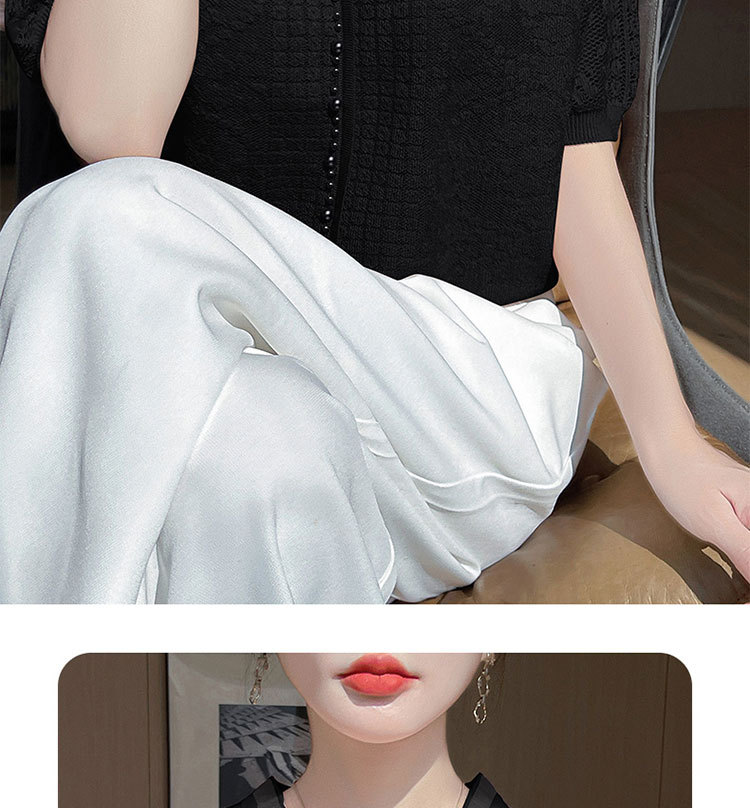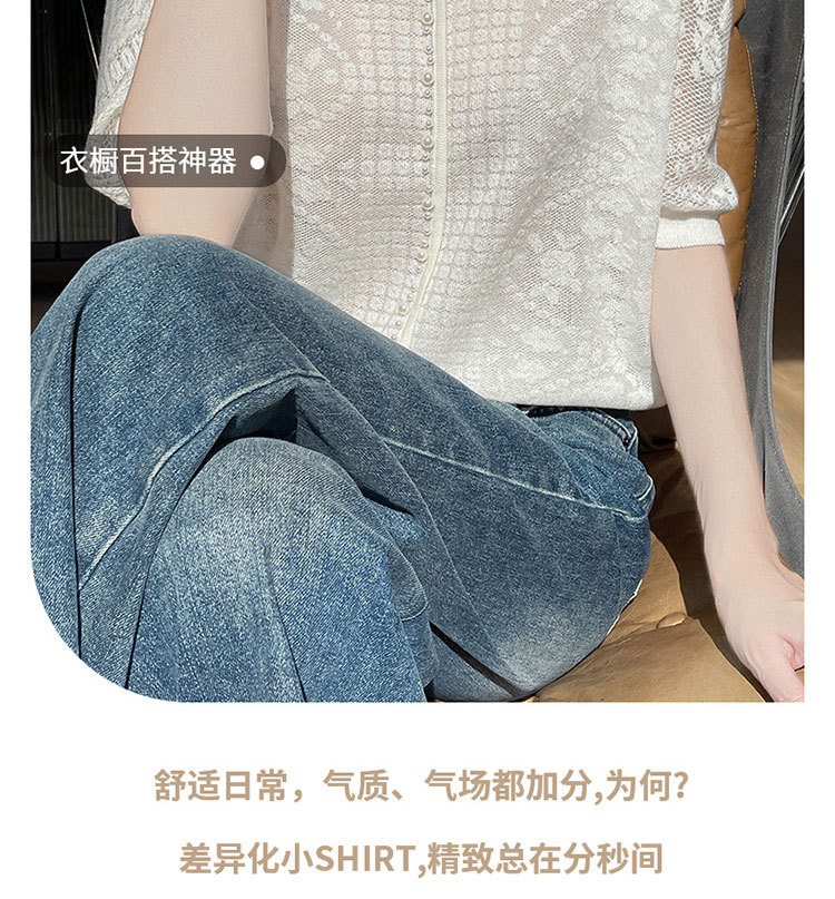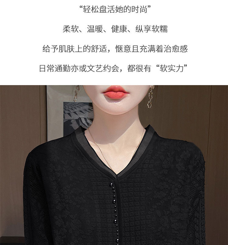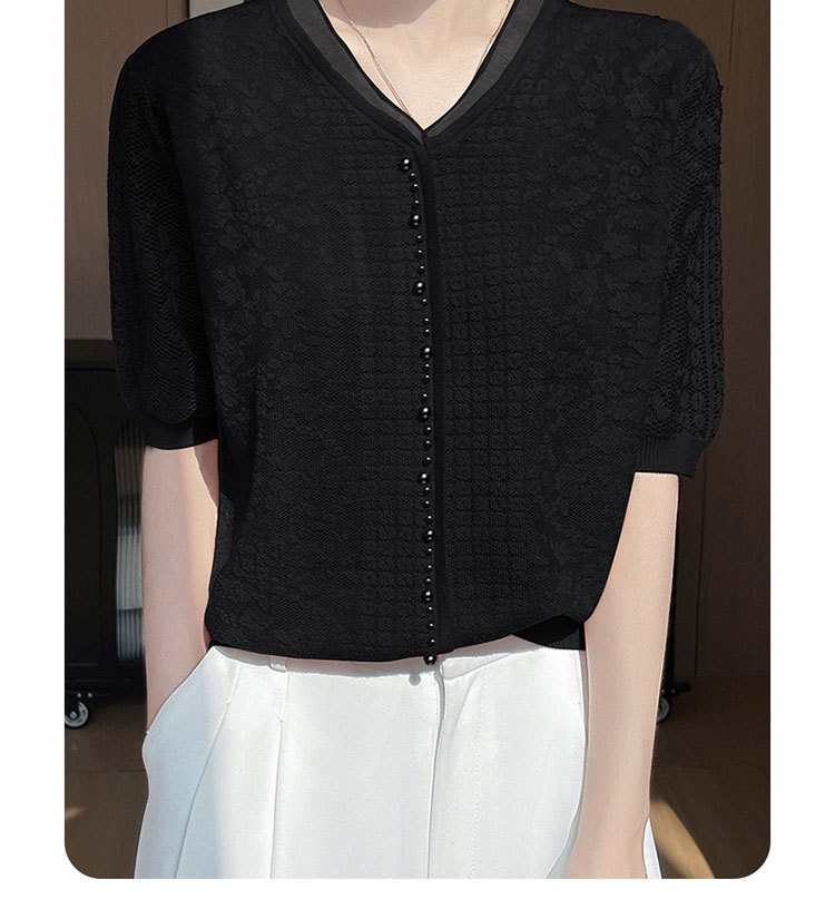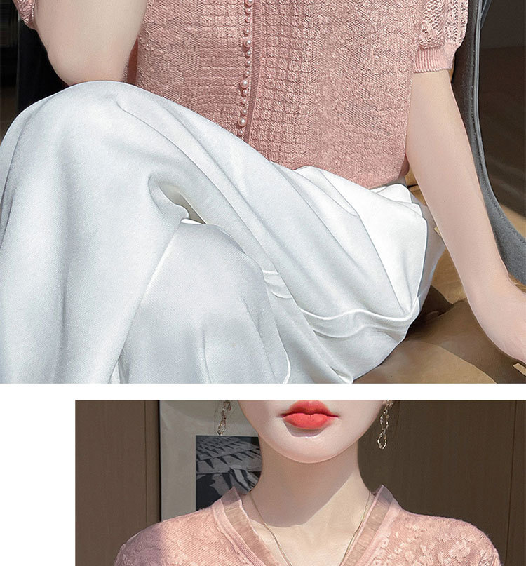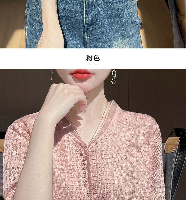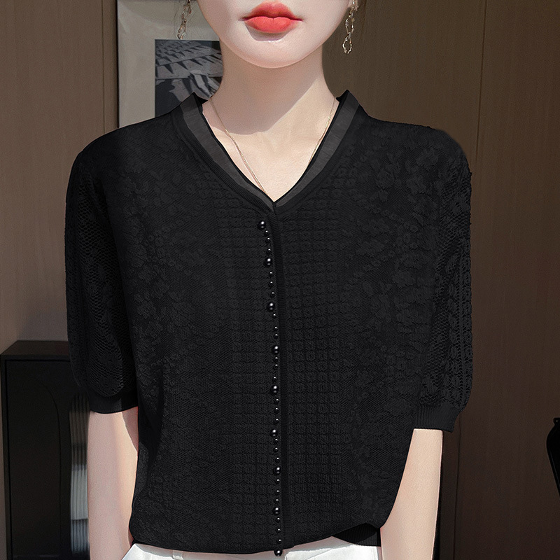 [공장 직접 공급] 여름 얇은 V 넥 텐셀 여성용 티셔츠 단색 자카드 느슨한 아이스 실크 반팔 니트 스웨터