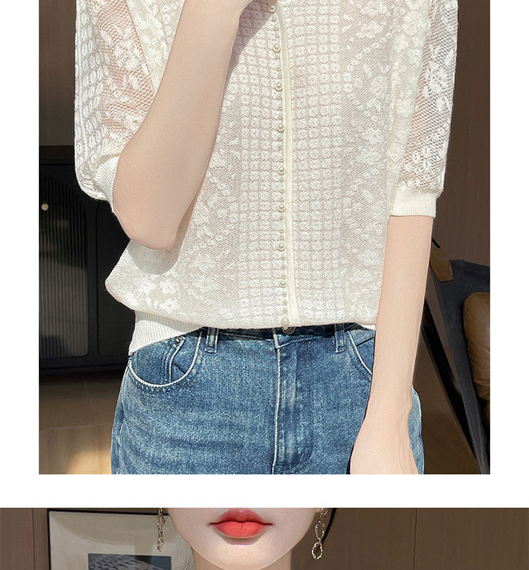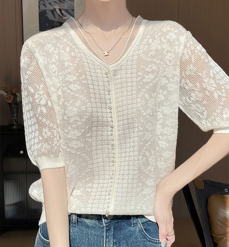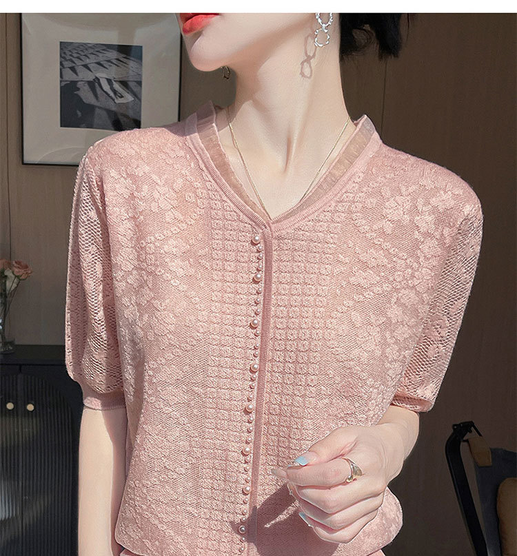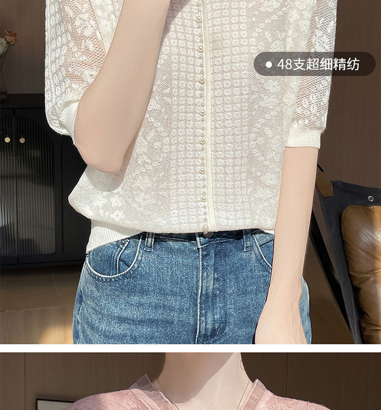 [공장 직접 공급] 여름 얇은 V 넥 텐셀 여성용 티셔츠 단색 자카드 느슨한 아이스 실크 반팔 니트 스웨터스토어 가기