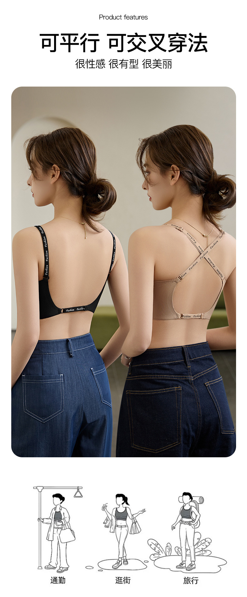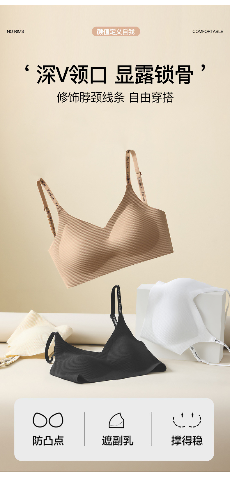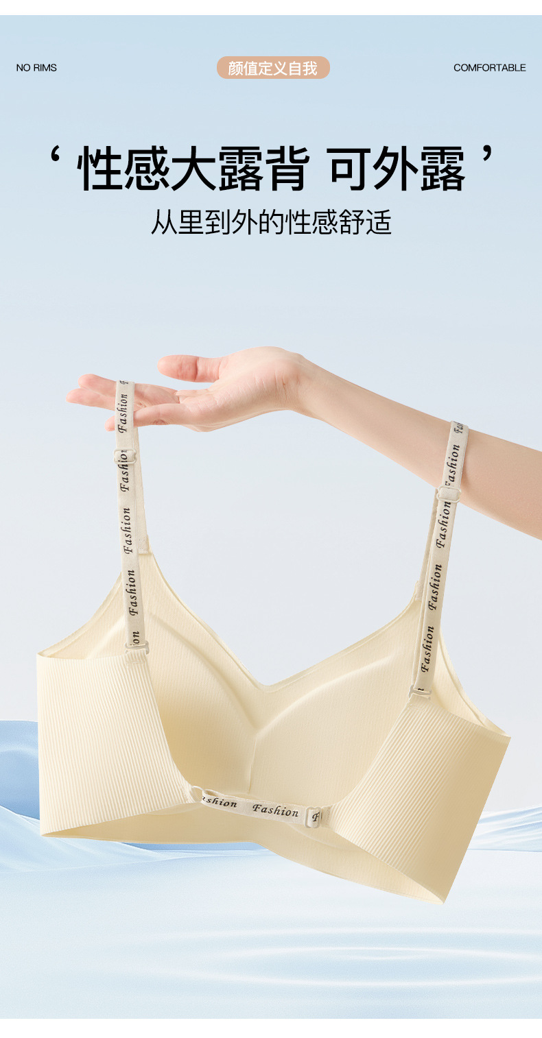 2317 Tracless 속옷 여자 여름 얇은 고정 컵 원피스 림 스포츠 백 큰 가슴 작은 브래지어