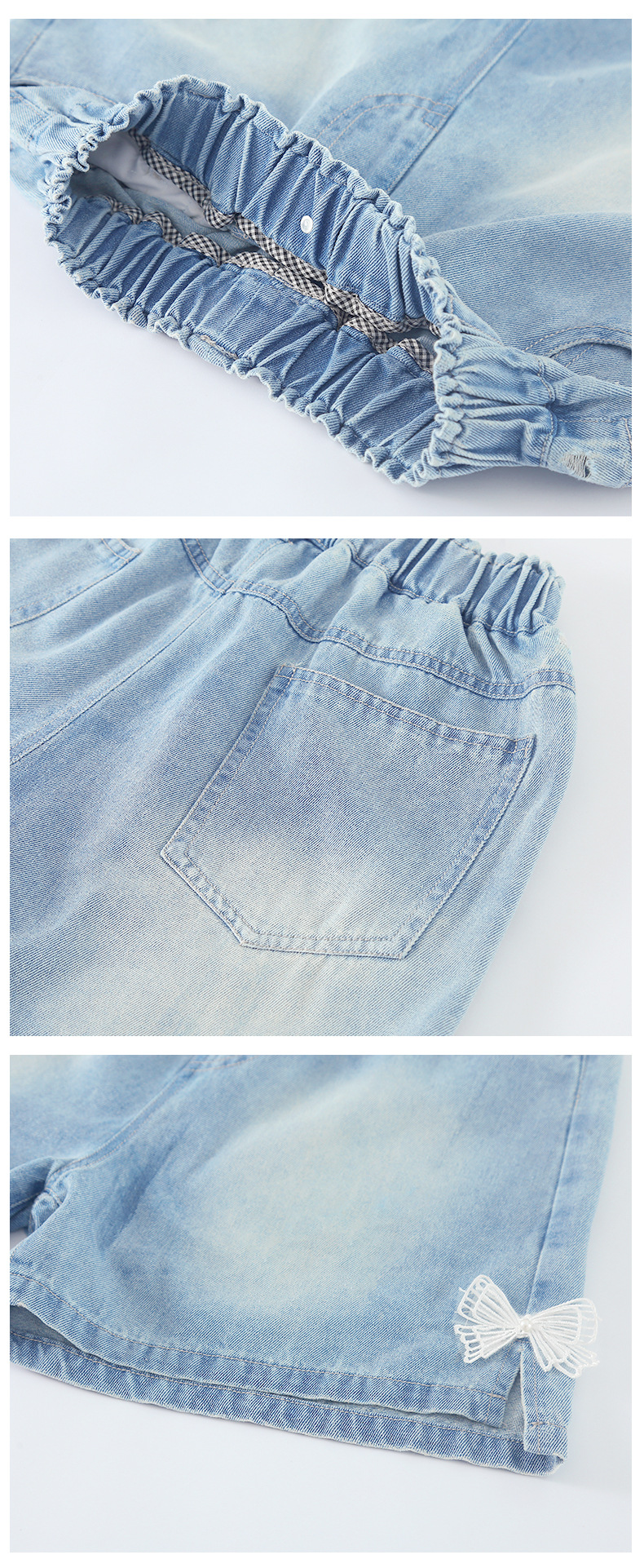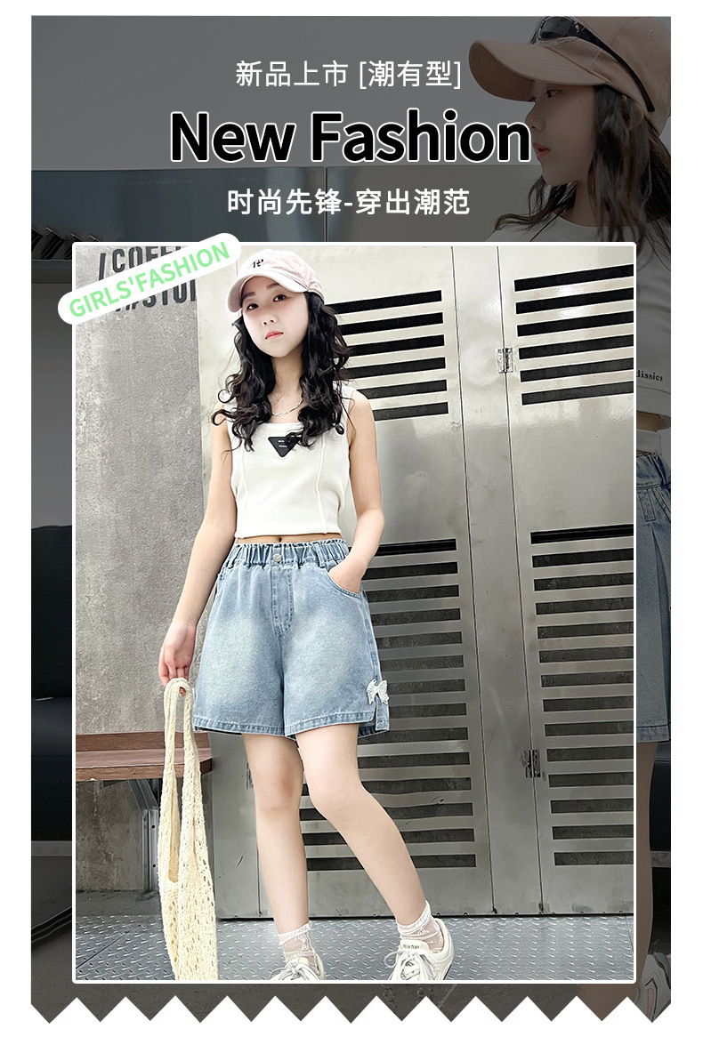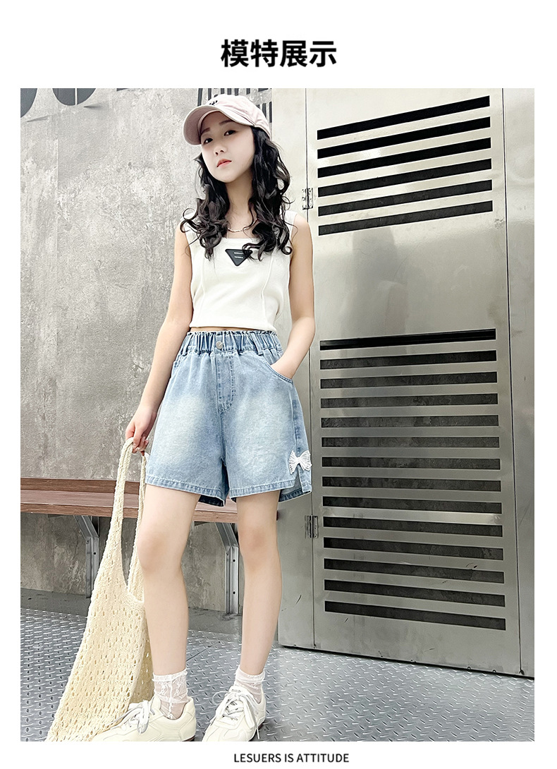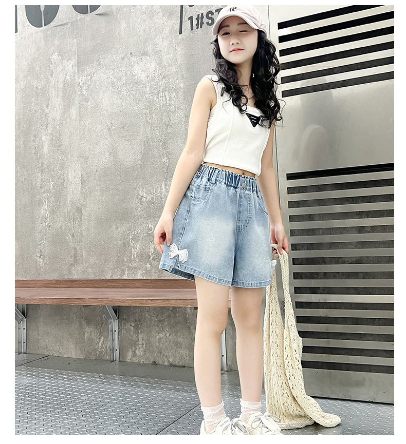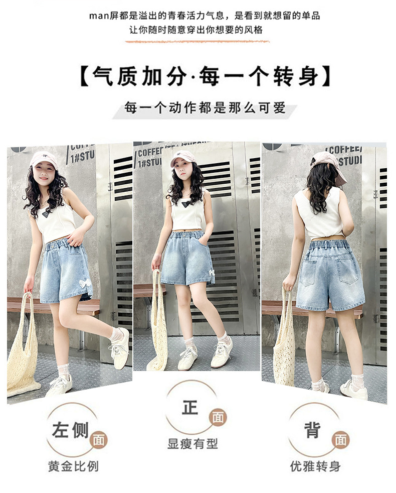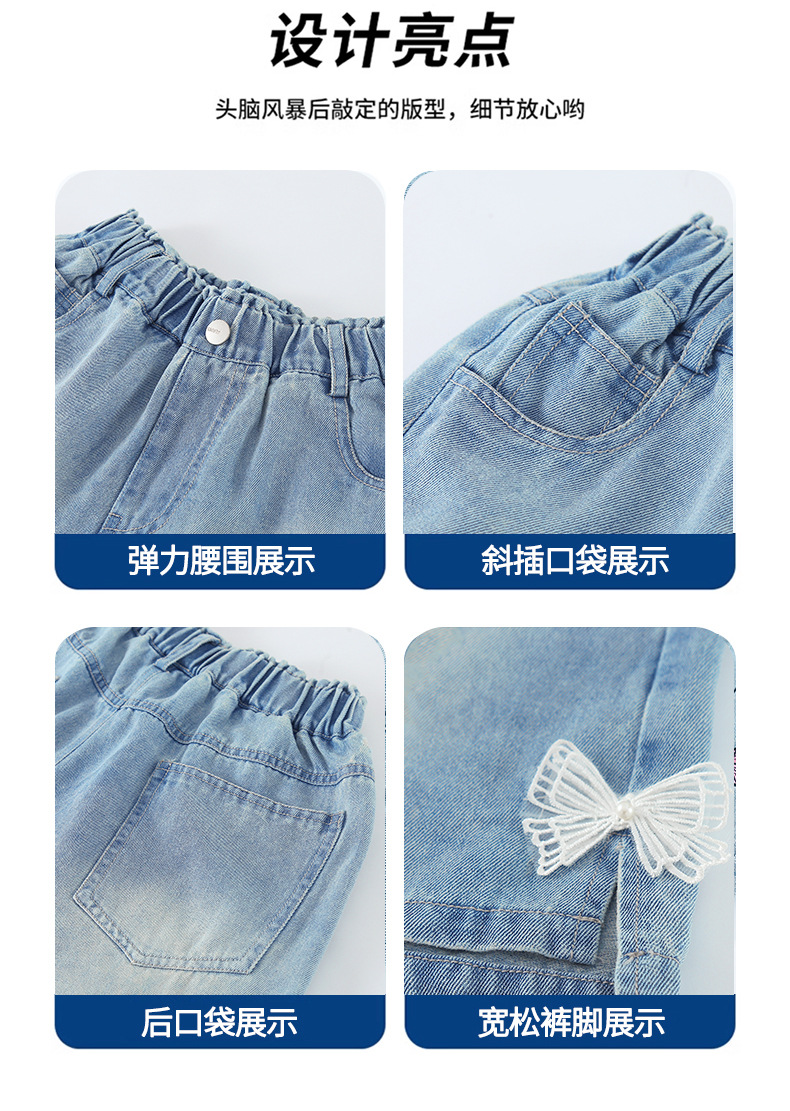 어린이 데님 반바지 2025 여름 새로운 어린이 발 입 분할 3 점 바지 소녀 서양식 캐주얼 바지스토어 가기