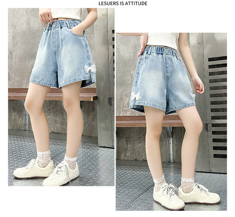 어린이 데님 반바지 2025 여름 새로운 어린이 발 입 분할 3 점 바지 소녀 서양식 캐주얼 바지