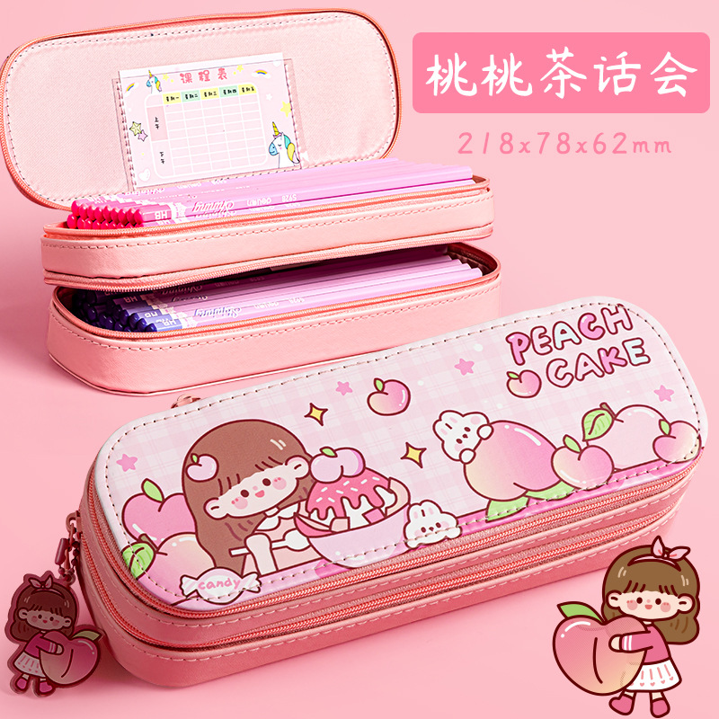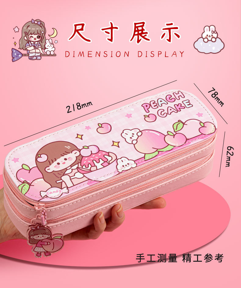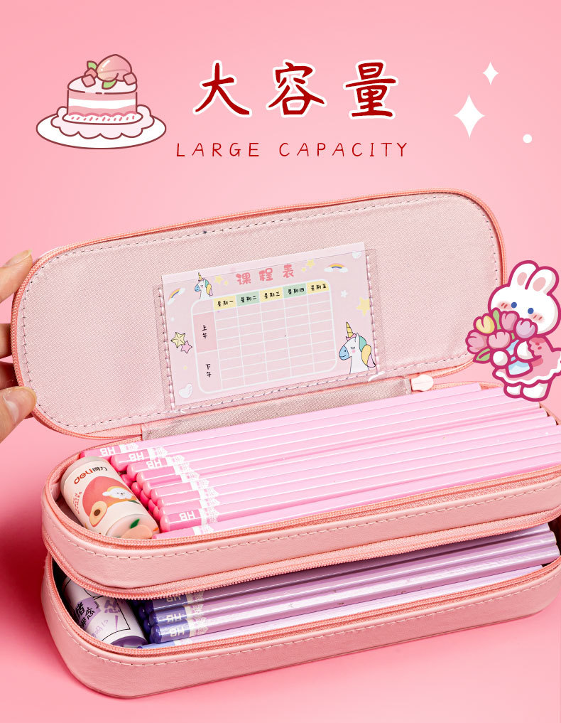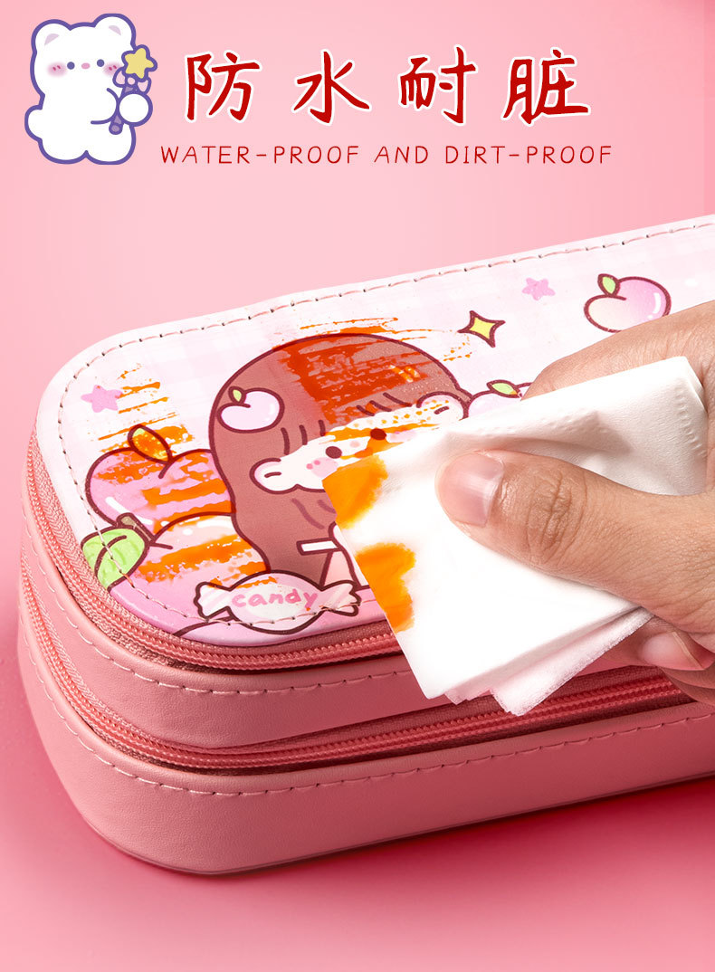 Kaba Bear 초등학생을위한 더블 레이어 연필 가방 ins 만화 고가치 대용량 연필 상자 방수 및 먼지 방지 문구 가방