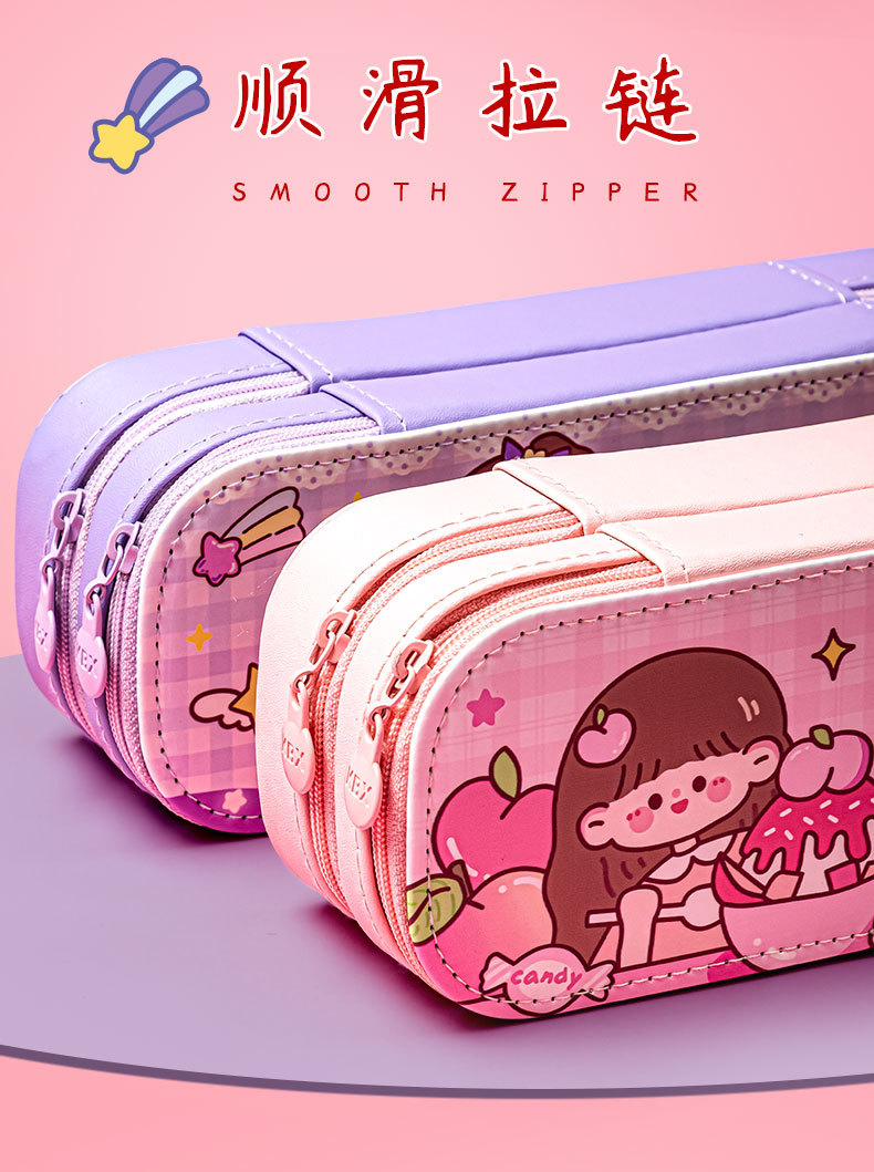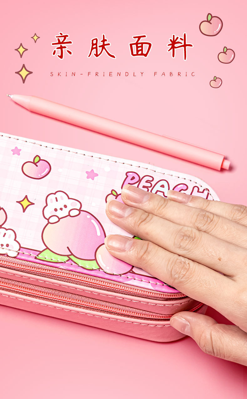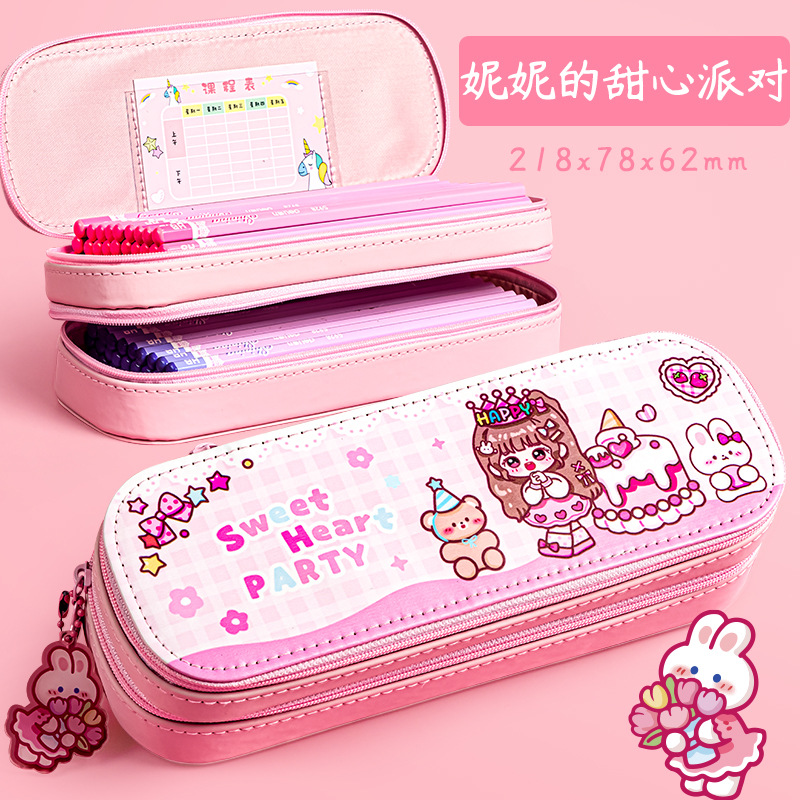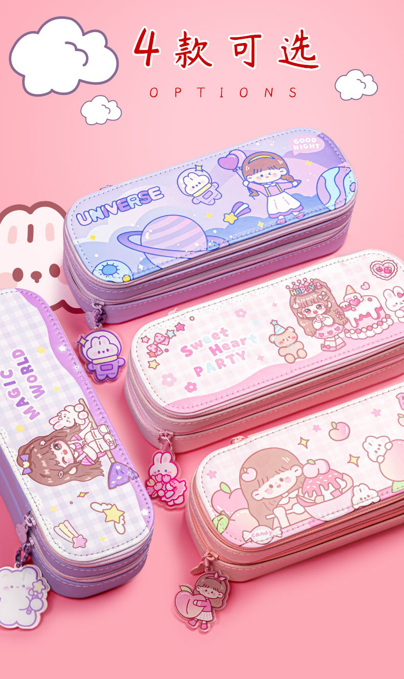 Kaba Bear 초등학생을위한 더블 레이어 연필 가방 ins 만화 고가치 대용량 연필 상자 방수 및 먼지 방지 문구 가방