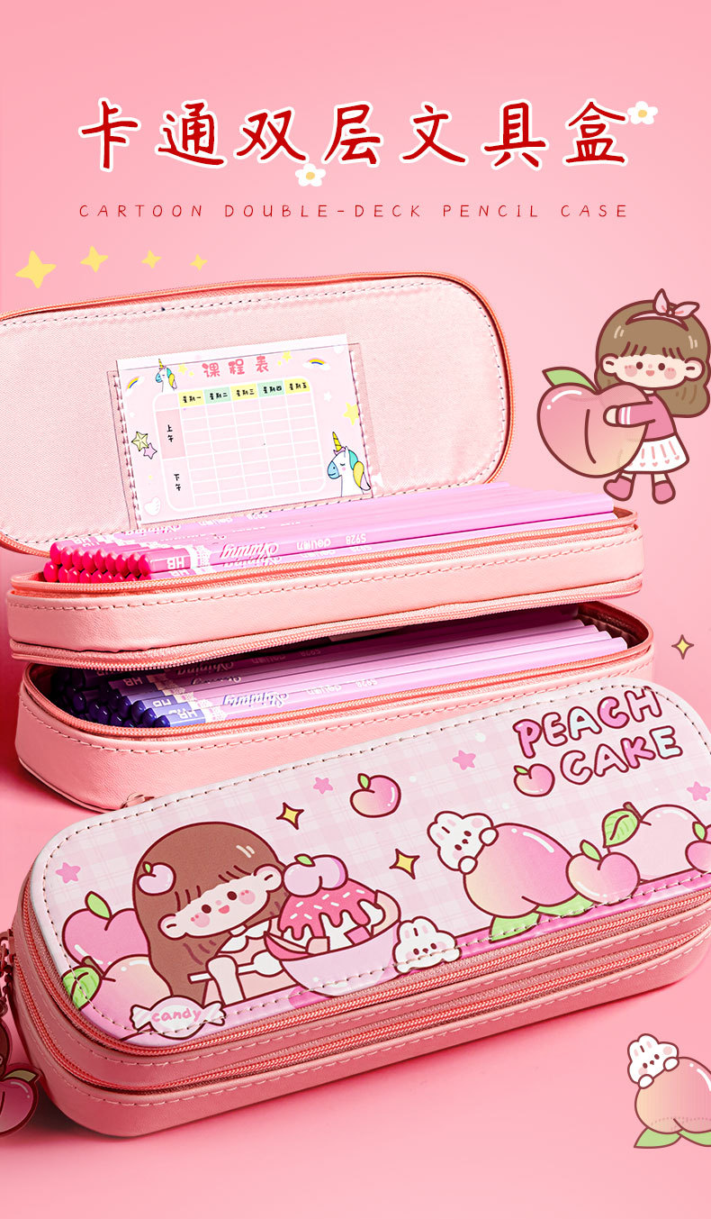 Kaba Bear 초등학생을위한 더블 레이어 연필 가방 ins 만화 고가치 대용량 연필 상자 방수 및 먼지 방지 문구 가방스토어 가기