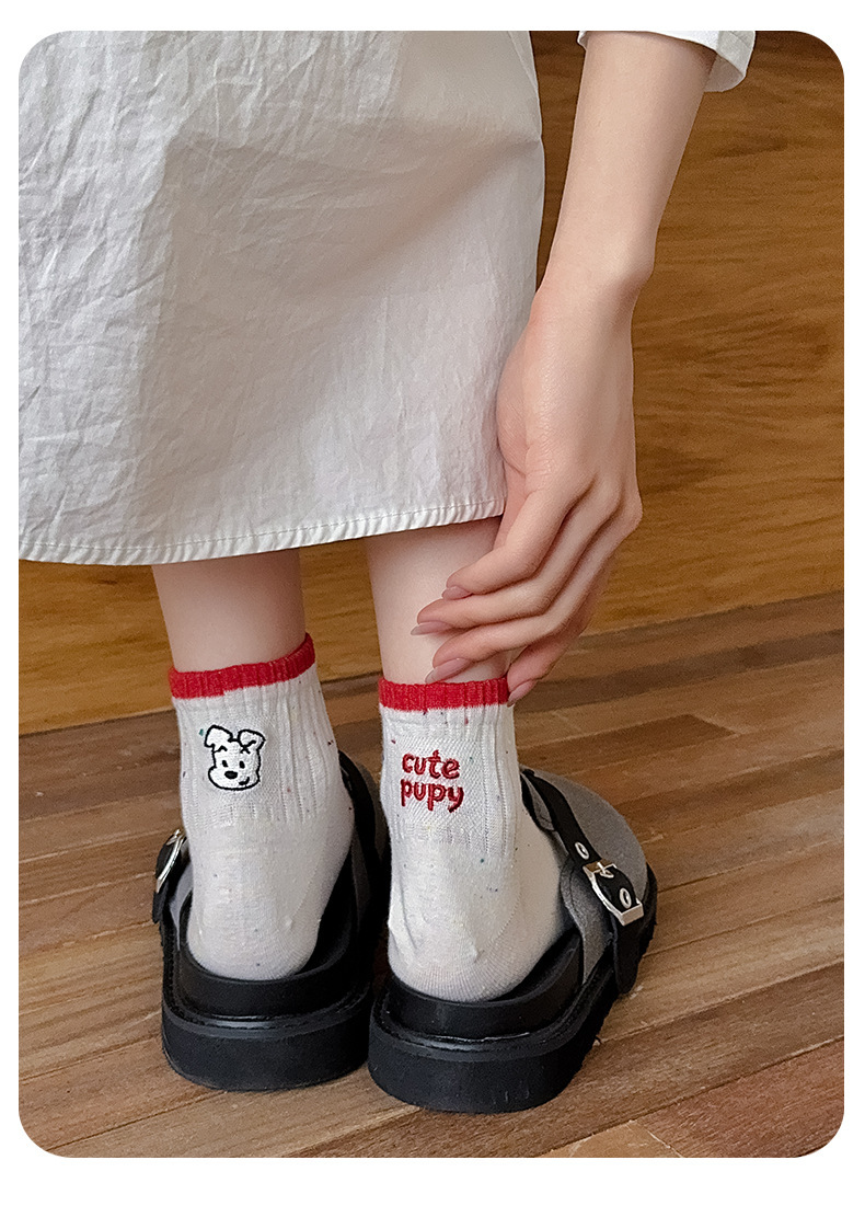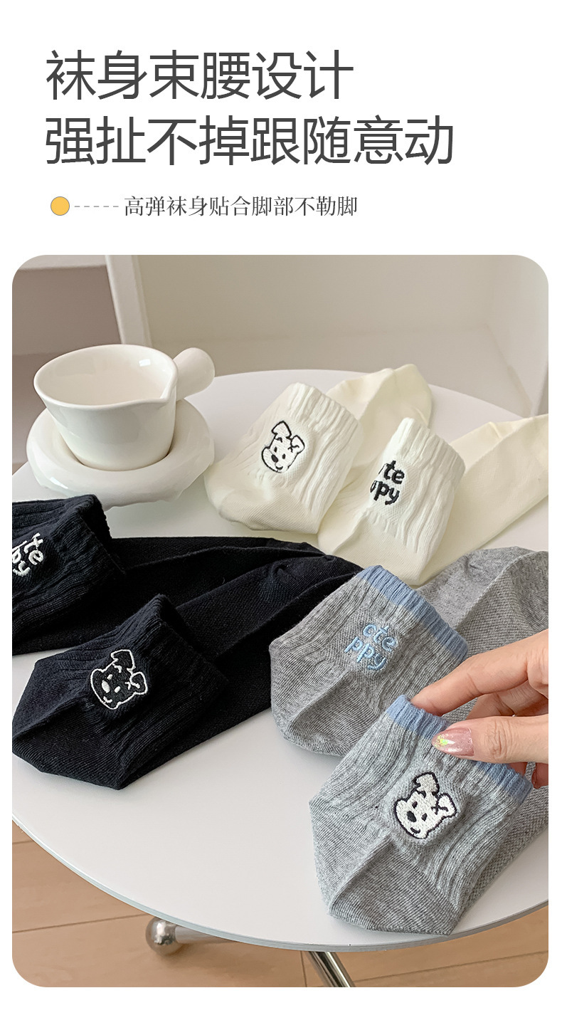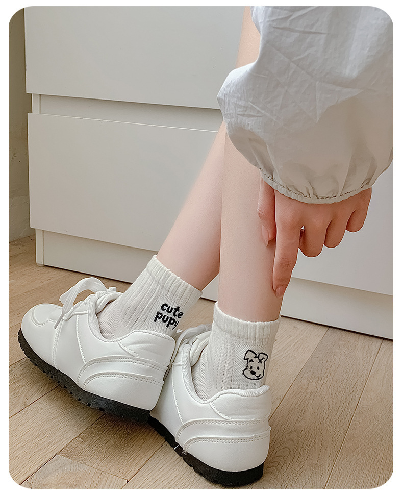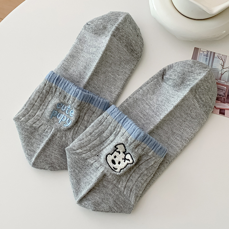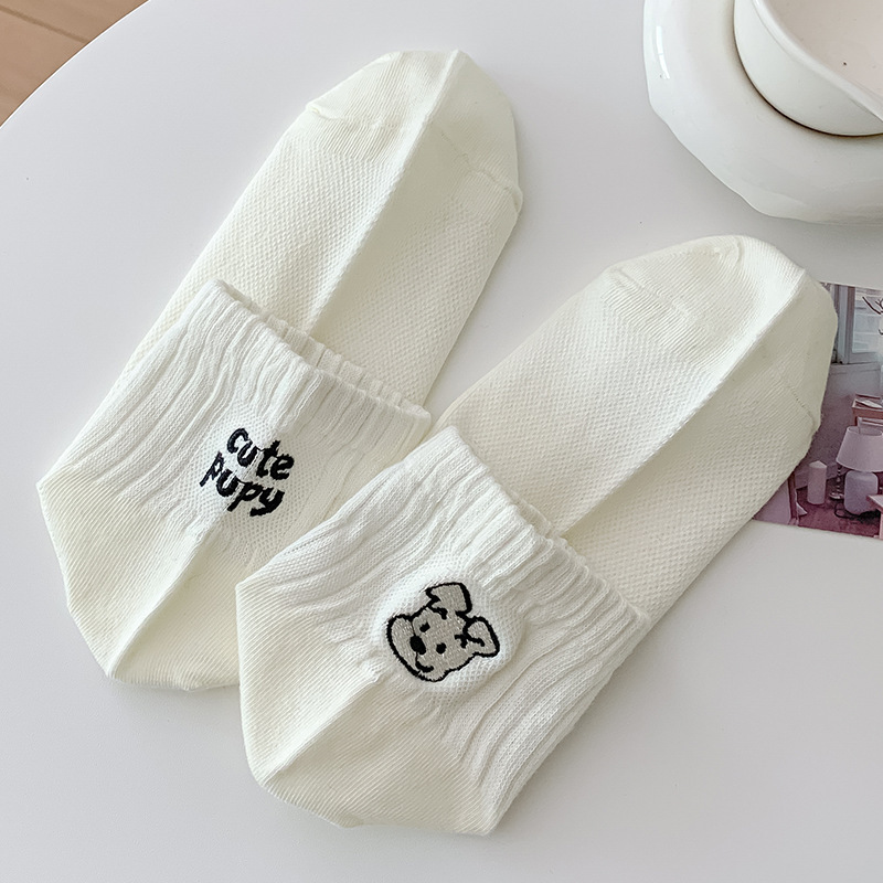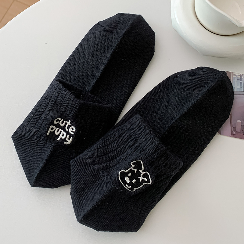 한국 스타일 인 스타일 보트 양말 만화 자수 강아지 편지 AB 패션 빗질면 여성 양말 낮은 면 양말스토어 가기