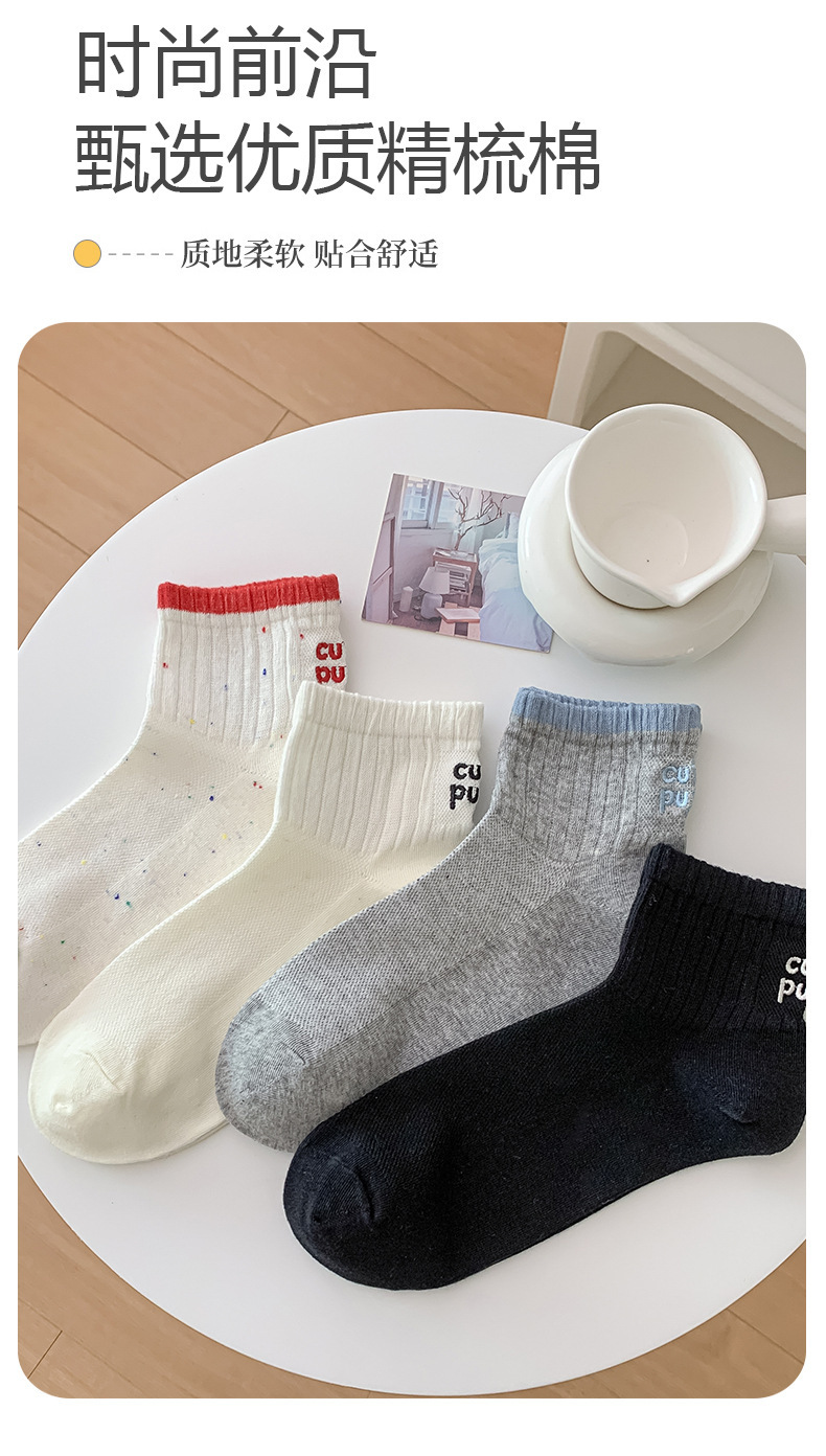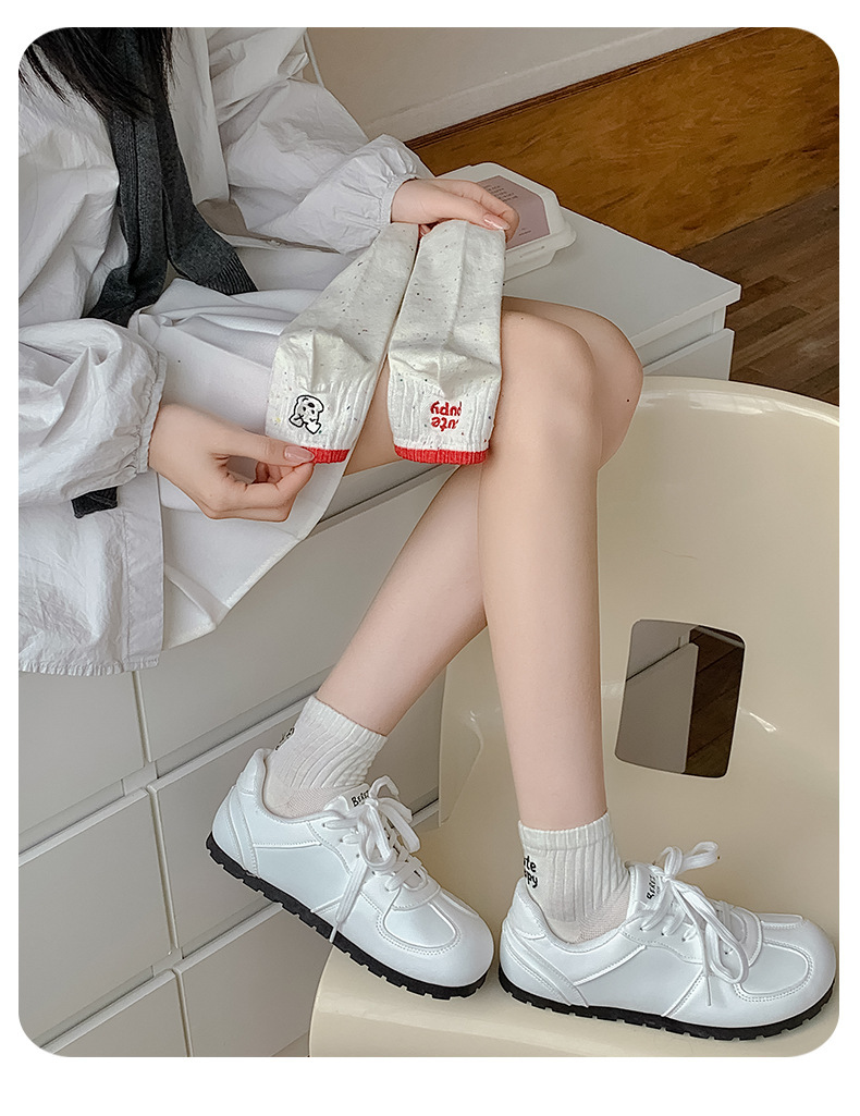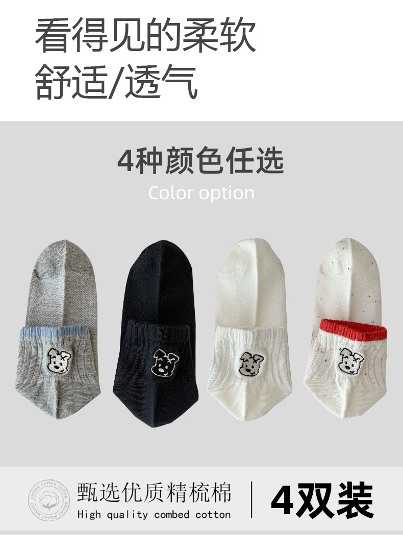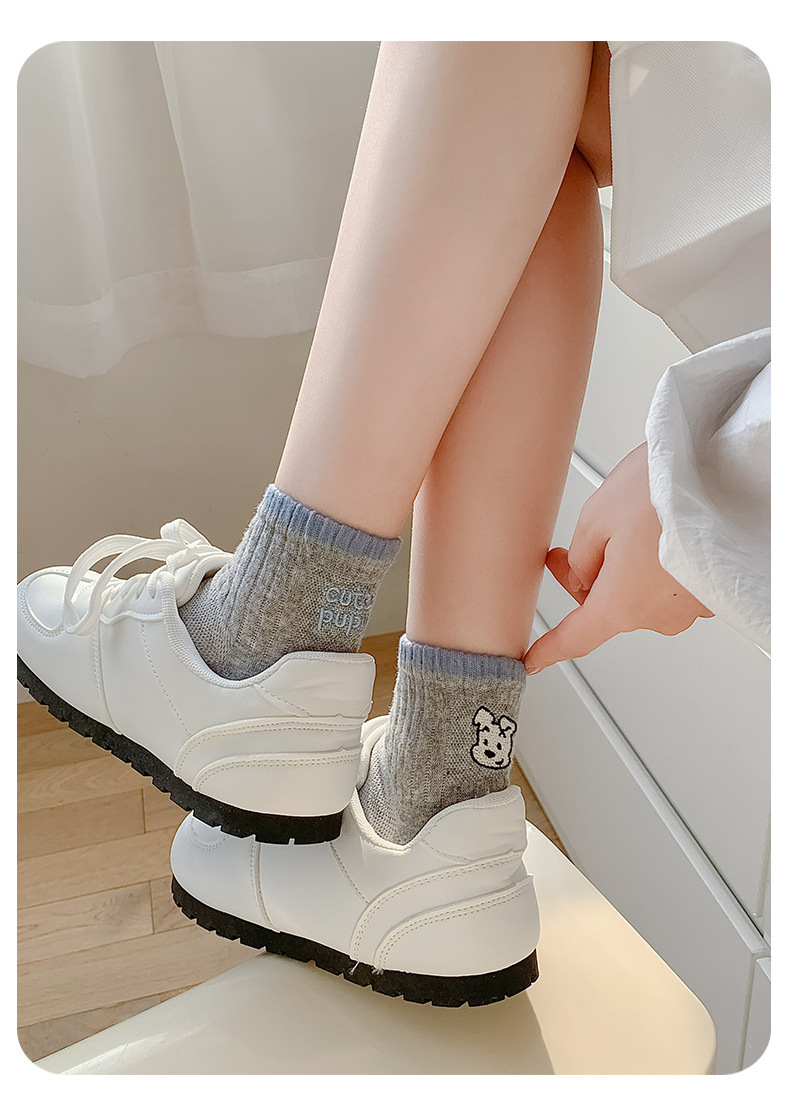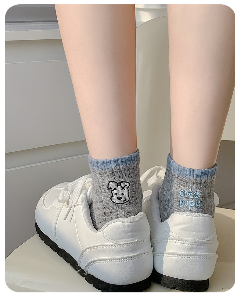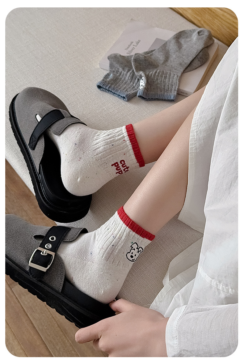 한국 스타일 인 스타일 보트 양말 만화 자수 강아지 편지 AB 패션 빗질면 여성 양말 낮은 면 양말스토어 가기