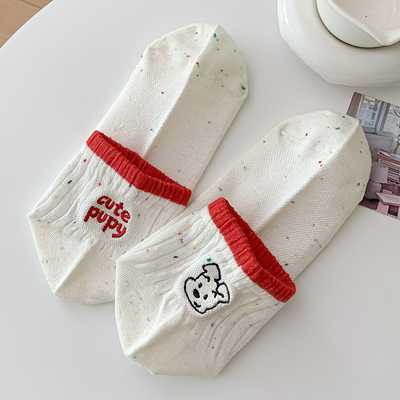 한국 스타일 인 스타일 보트 양말 만화 자수 강아지 편지 AB 패션 빗질면 여성 양말 낮은 면 양말
