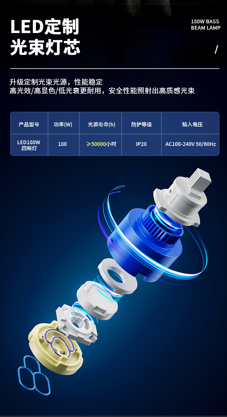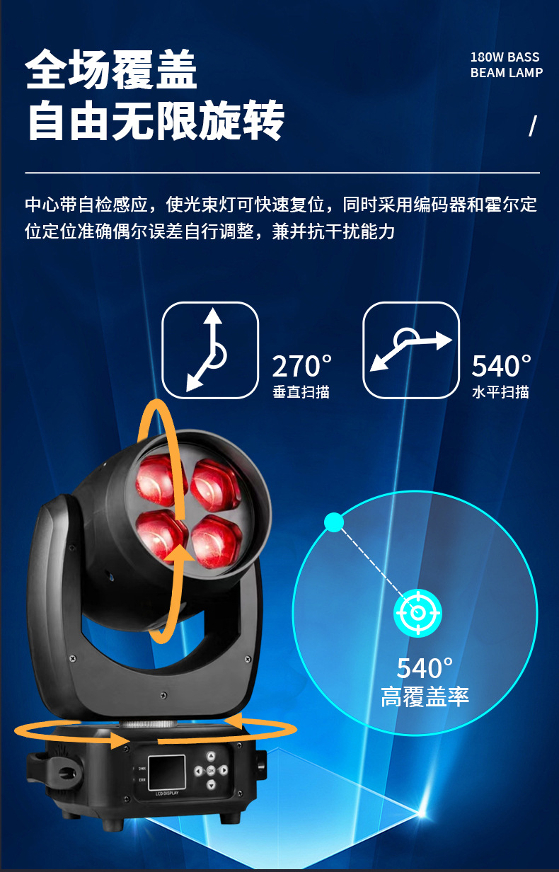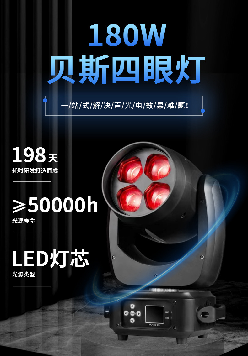 LED180W 빔 패턴 조명, 4구 무빙 헤드, 염색 조명, KTV, 하이룸, 대외 무역, 무대 전용, KTV룸 전용