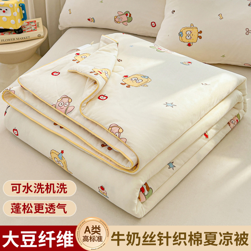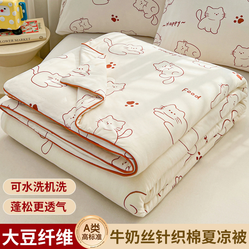 공장 도매 클래스 우유 니트 콩 섬유 이불 여름 어린이 에어컨 이불 기계 세탁기 여름 시원한 이불