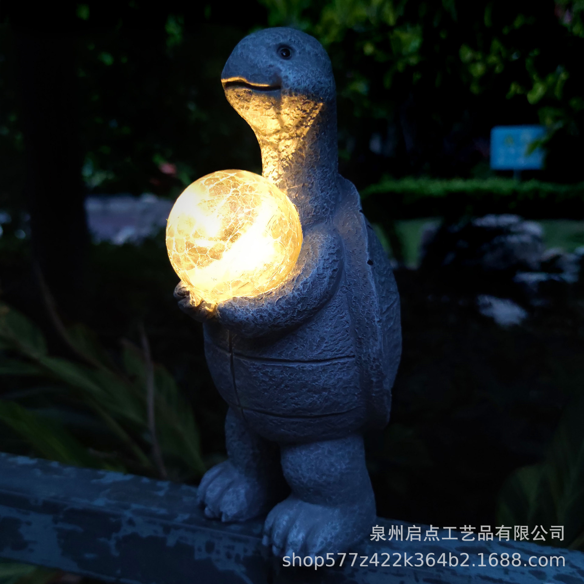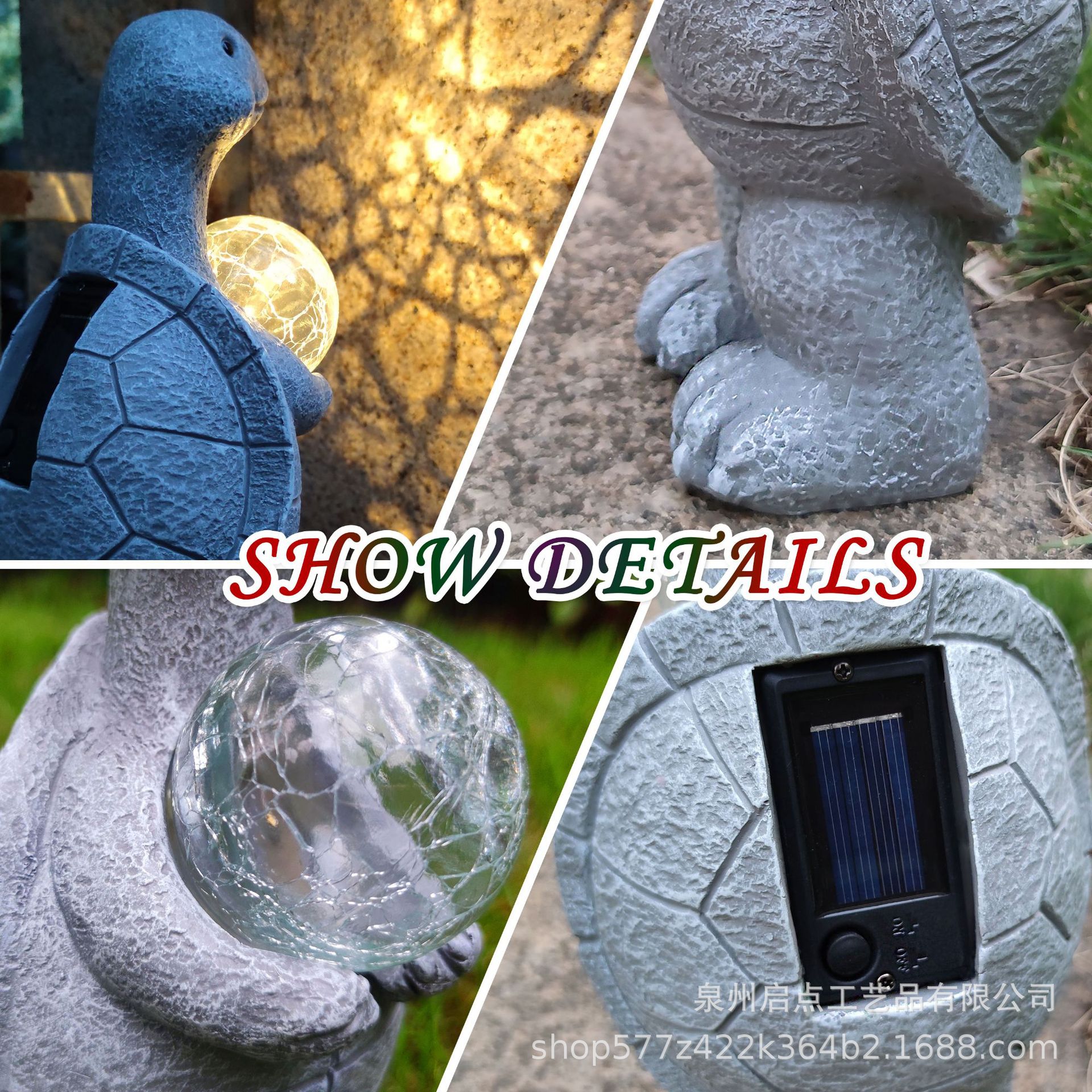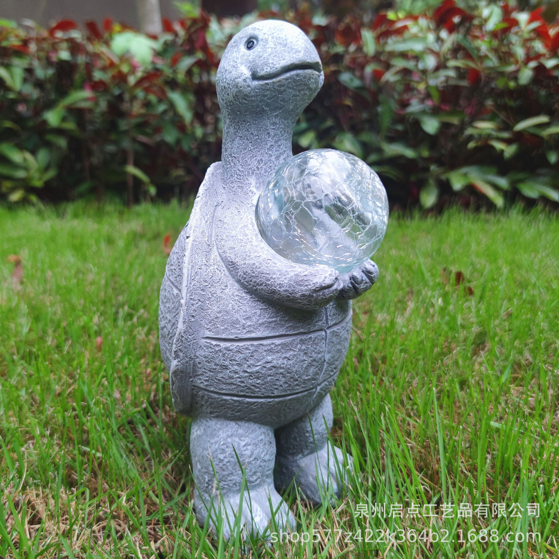거북이 공을 포옹하는 수지 공예품 태양열 LED 조명 유리 공 야외 장식품 정원 잔디의 국경 간 직접 공급스토어 가기