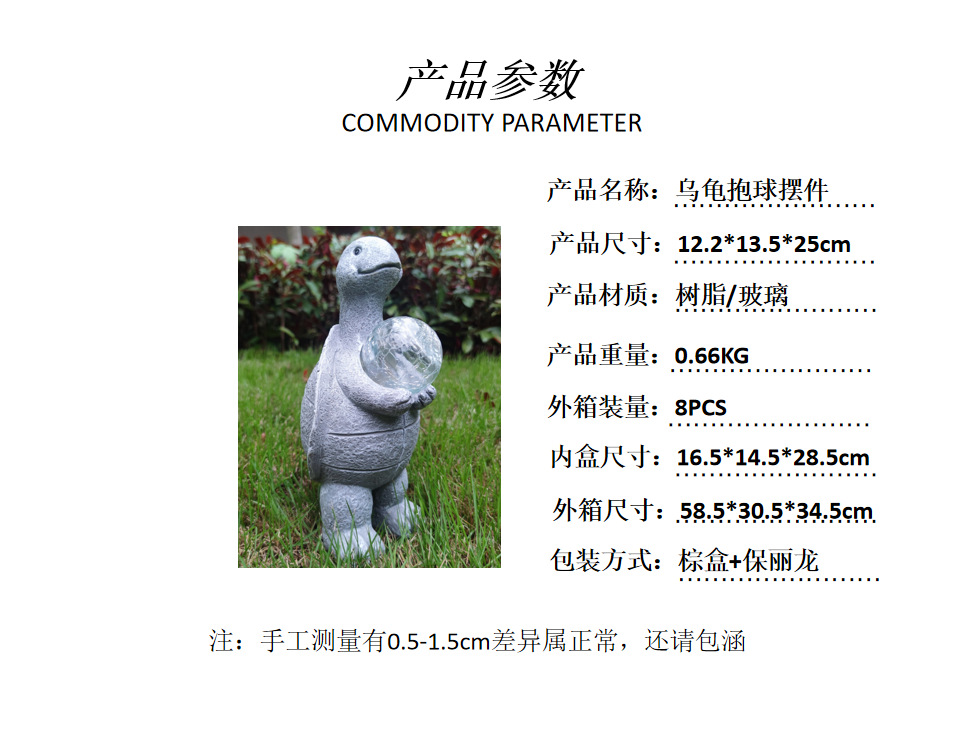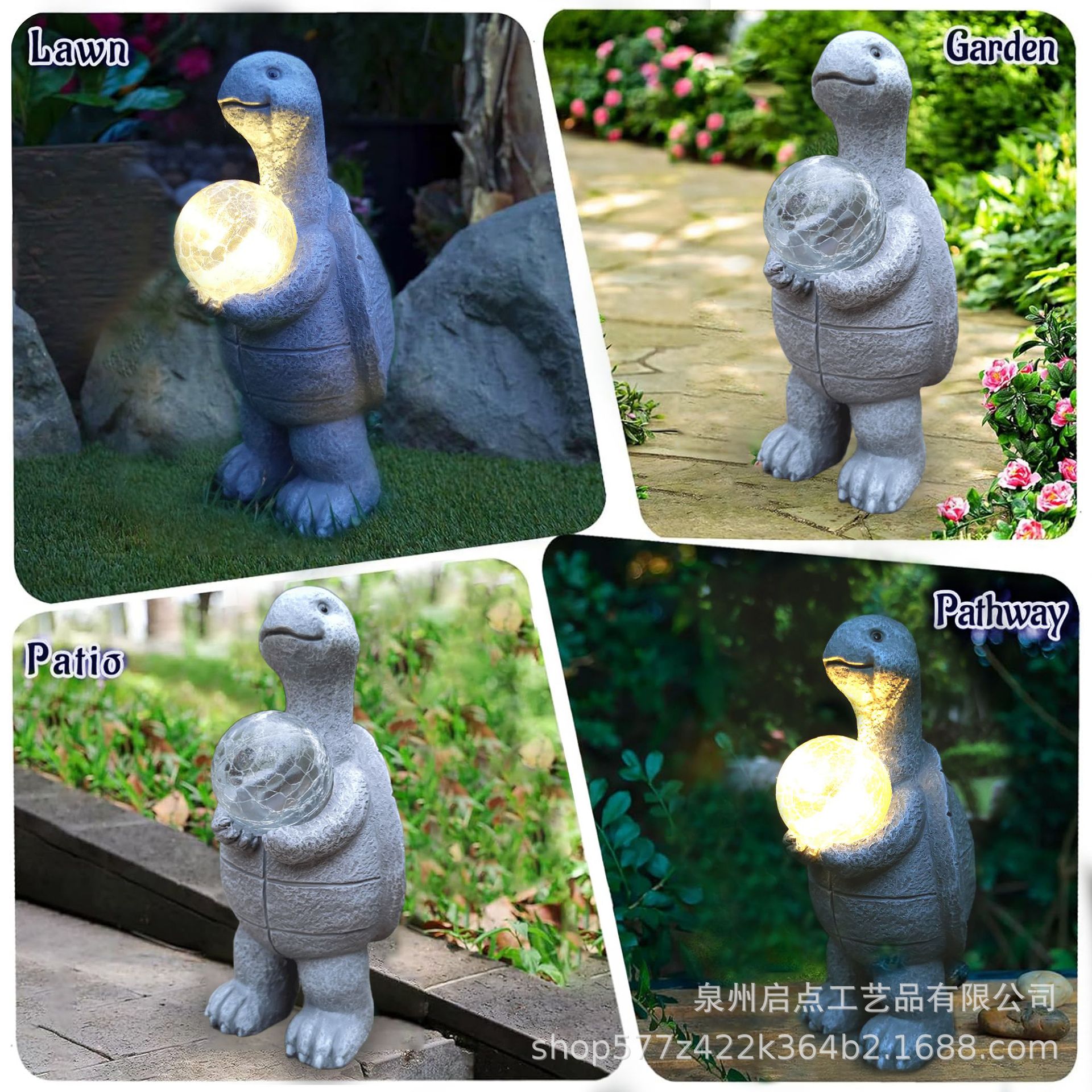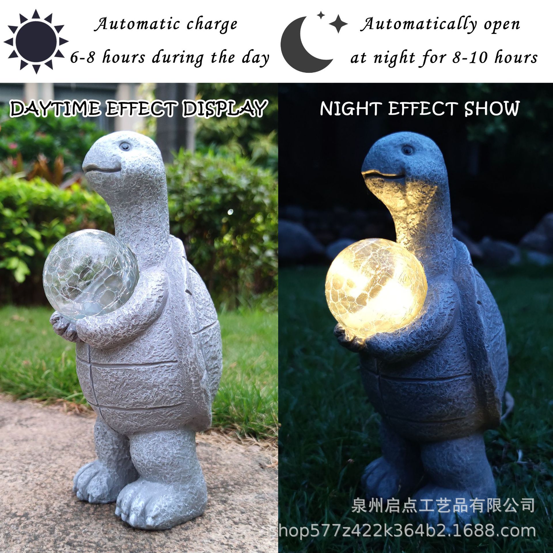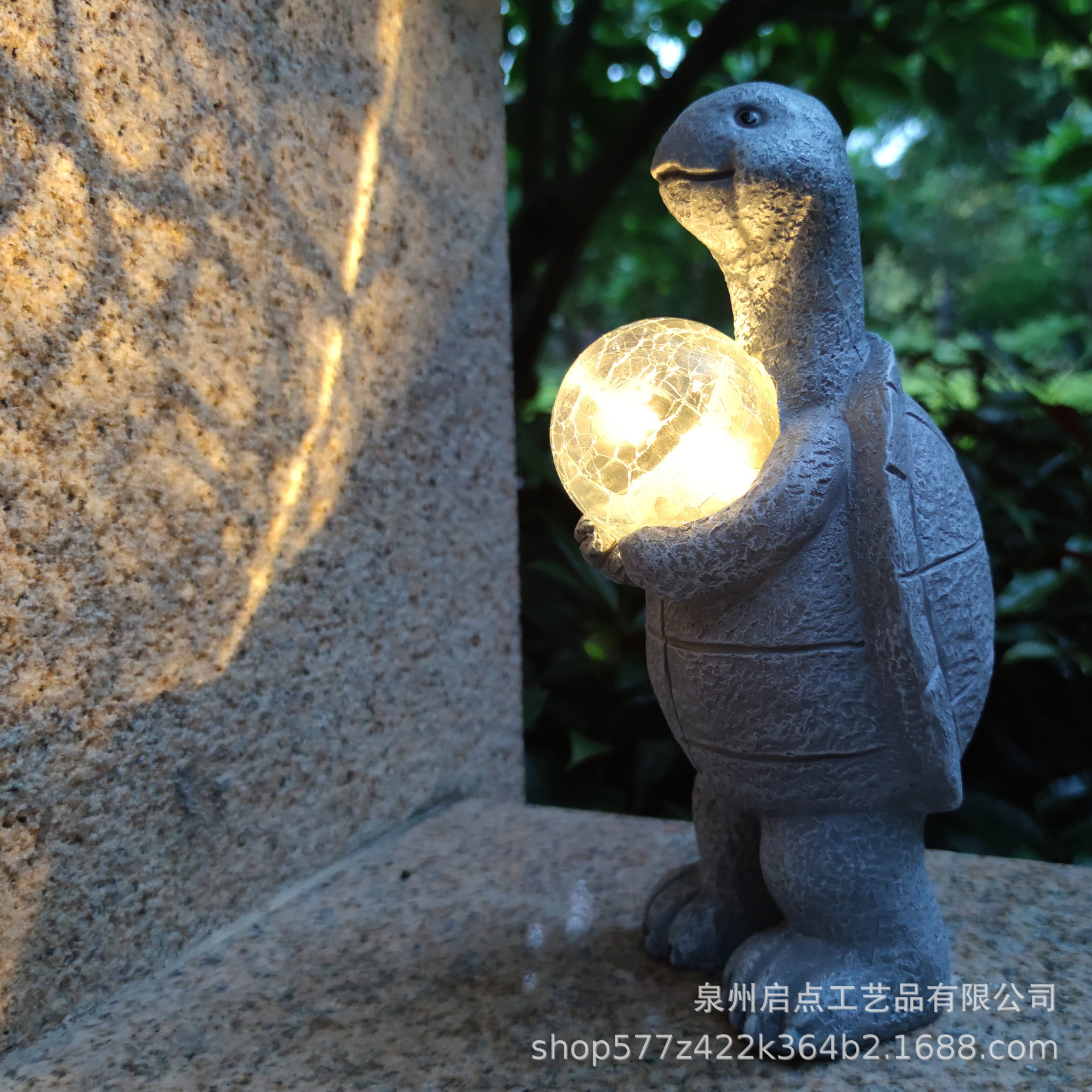 거북이 공을 포옹하는 수지 공예품 태양열 LED 조명 유리 공 야외 장식품 정원 잔디의 국경 간 직접 공급스토어 가기