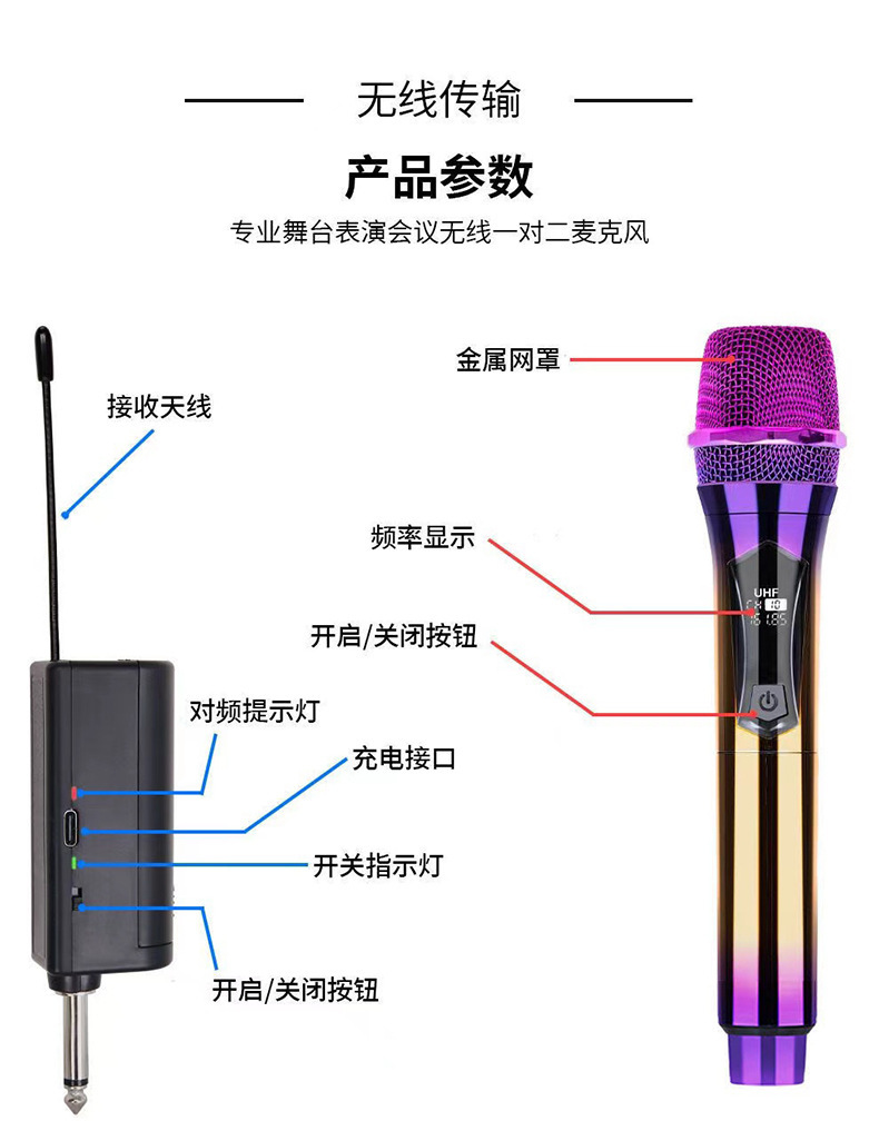 국경 간 무선 마이크 108 충전식 1-2 스테이지 홈 ktv 야외 오디오 성능 내장 마이크스토어 가기