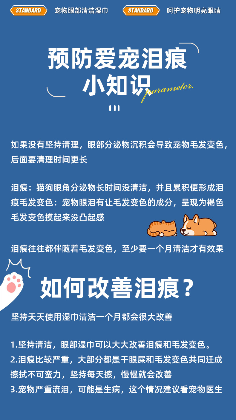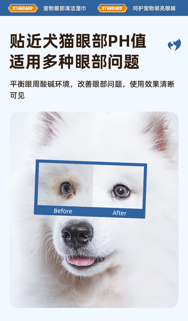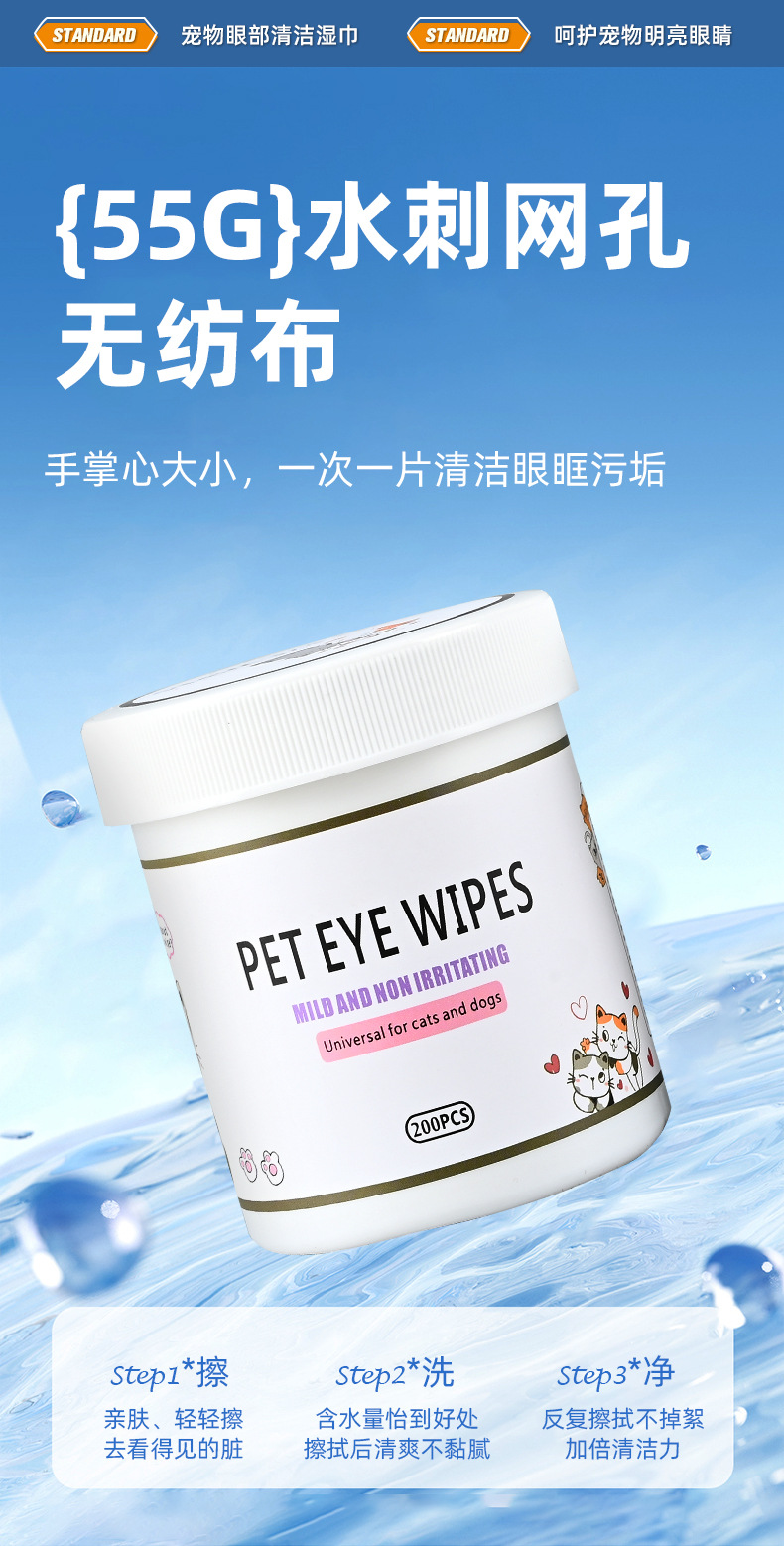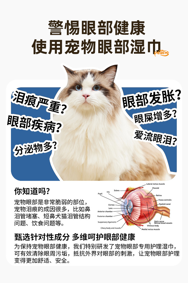 • 애완동물 눈 눈물 얼룩 물티슈 (200매) 영문판