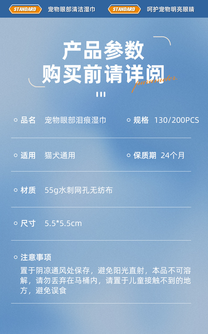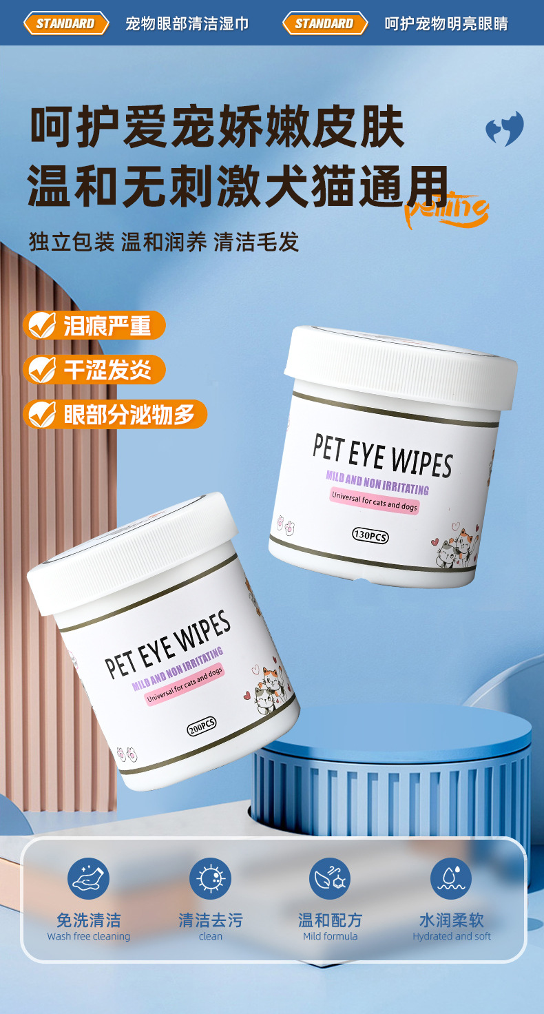 • 애완동물 눈물 자국 제거 물티슈 (130매) - 영문판