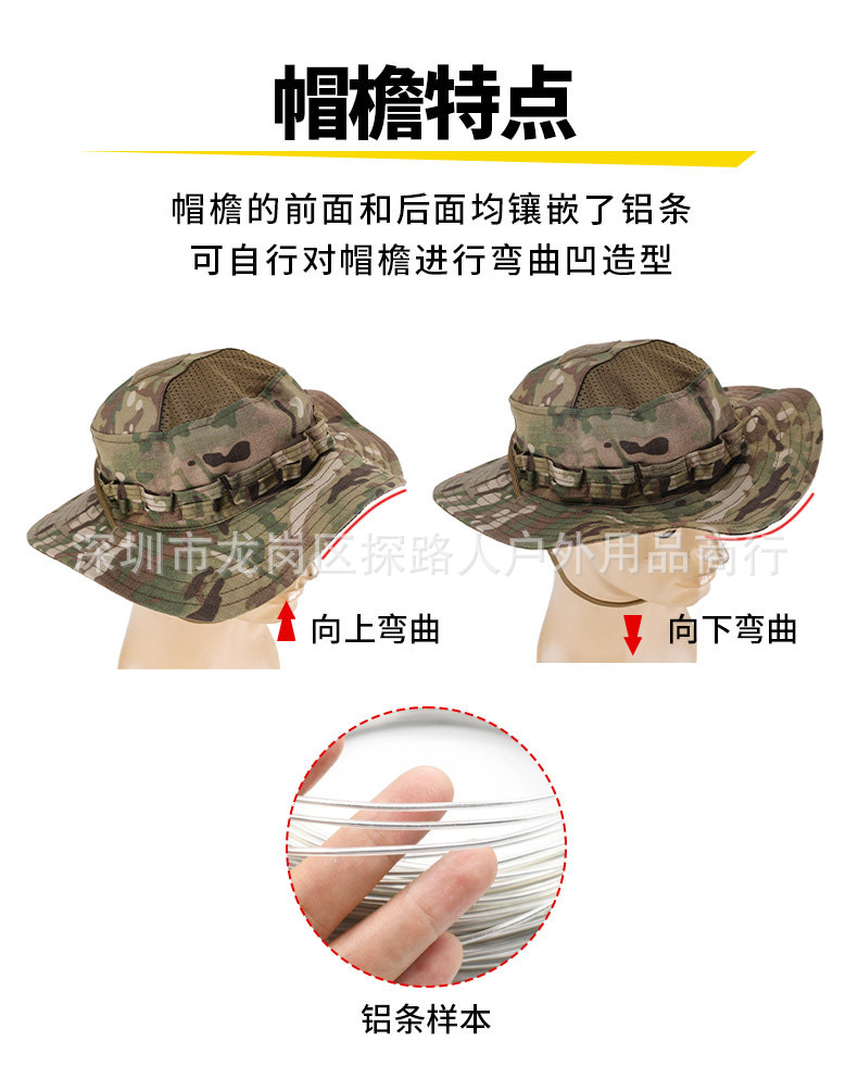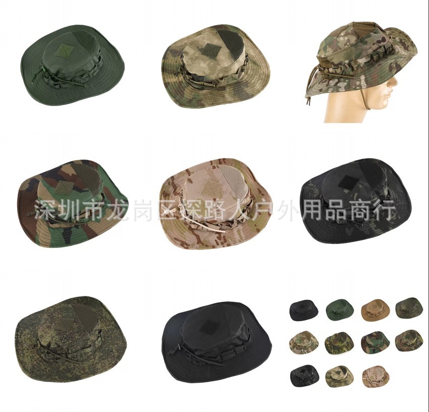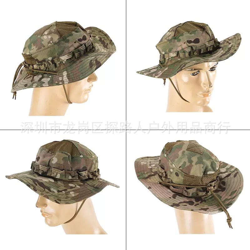 새로운 위장 부니 모자 전술 대형 챙 둥근 모자 여름 야외 등산 캠핑 낚시 양산 어부 재고 있음스토어 가기