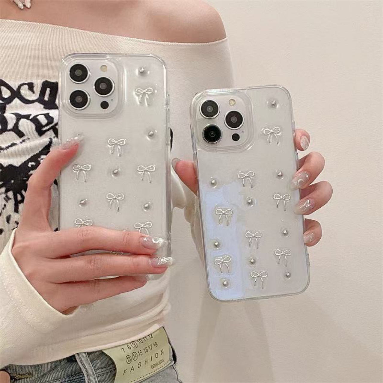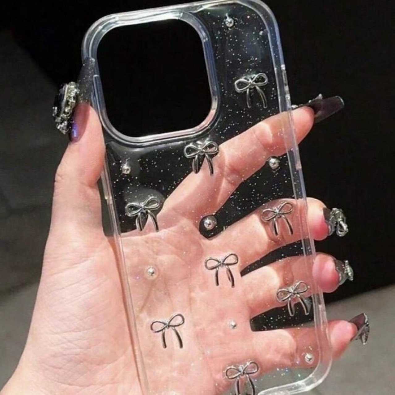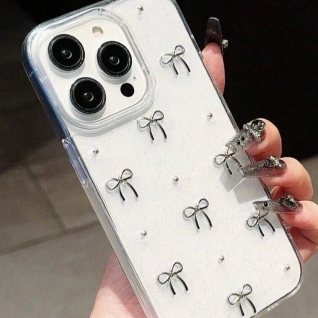 Huawei iphone16 휴대폰 케이스 15pro/16promax 팔찌 휴대폰 케이스에 적합한 실버 보우