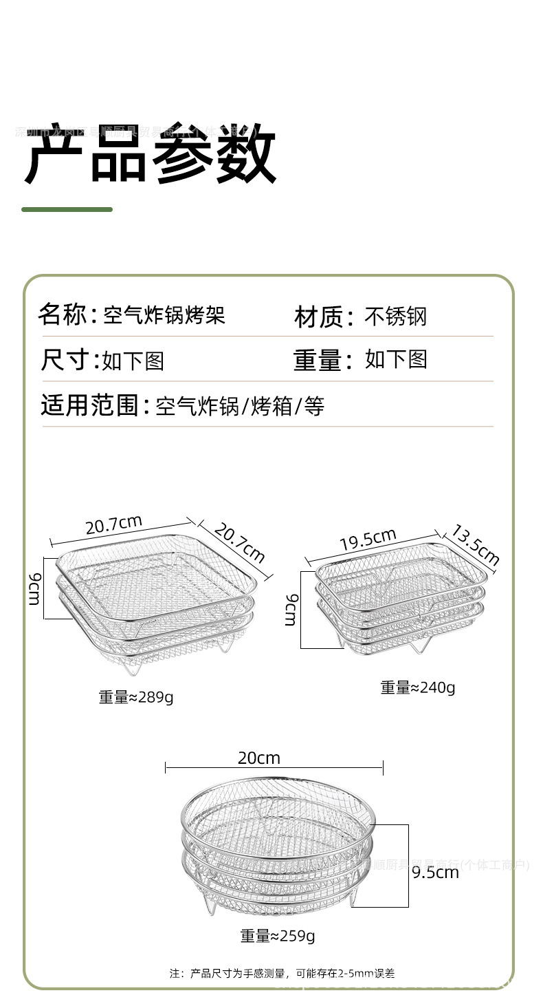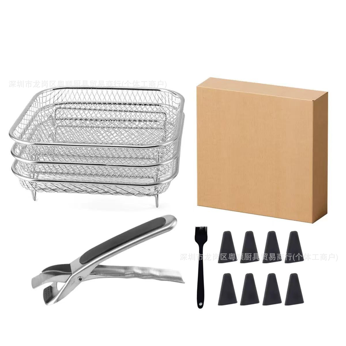 새로운 국경 간 에어 프라이어 그릴 304 스테인레스 스틸 탈수 랙 메쉬 랙을 두껍게 한 3 층 분리 가능한 냉각 랙