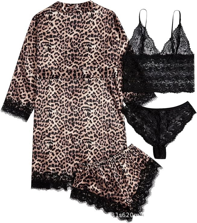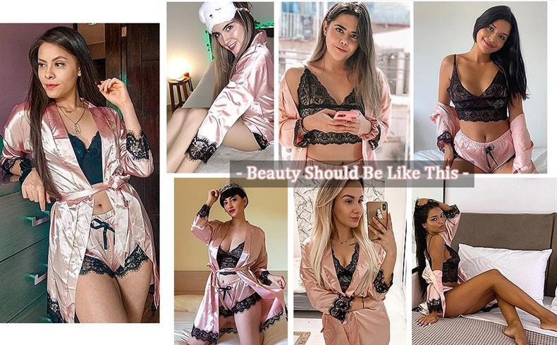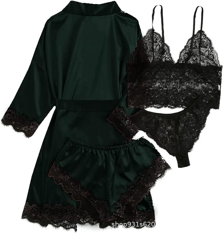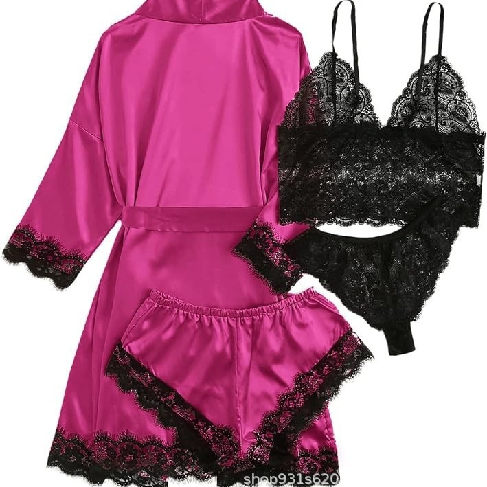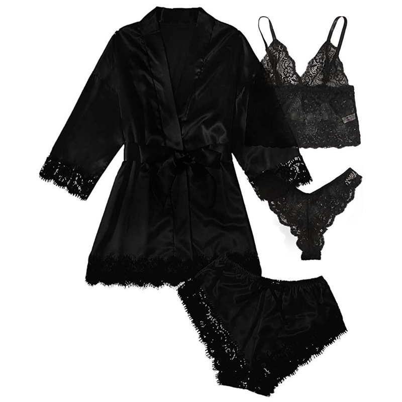 아마존 대외 무역 4피스 새 레이스 여성용 대형 제조업체 유럽과 미국의 잠옷 홈웨어 섹시한 속옷스토어 가기