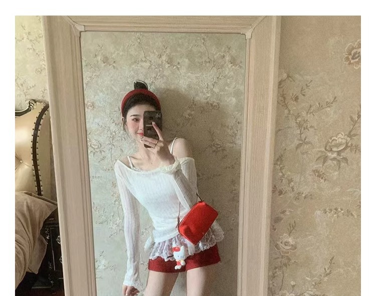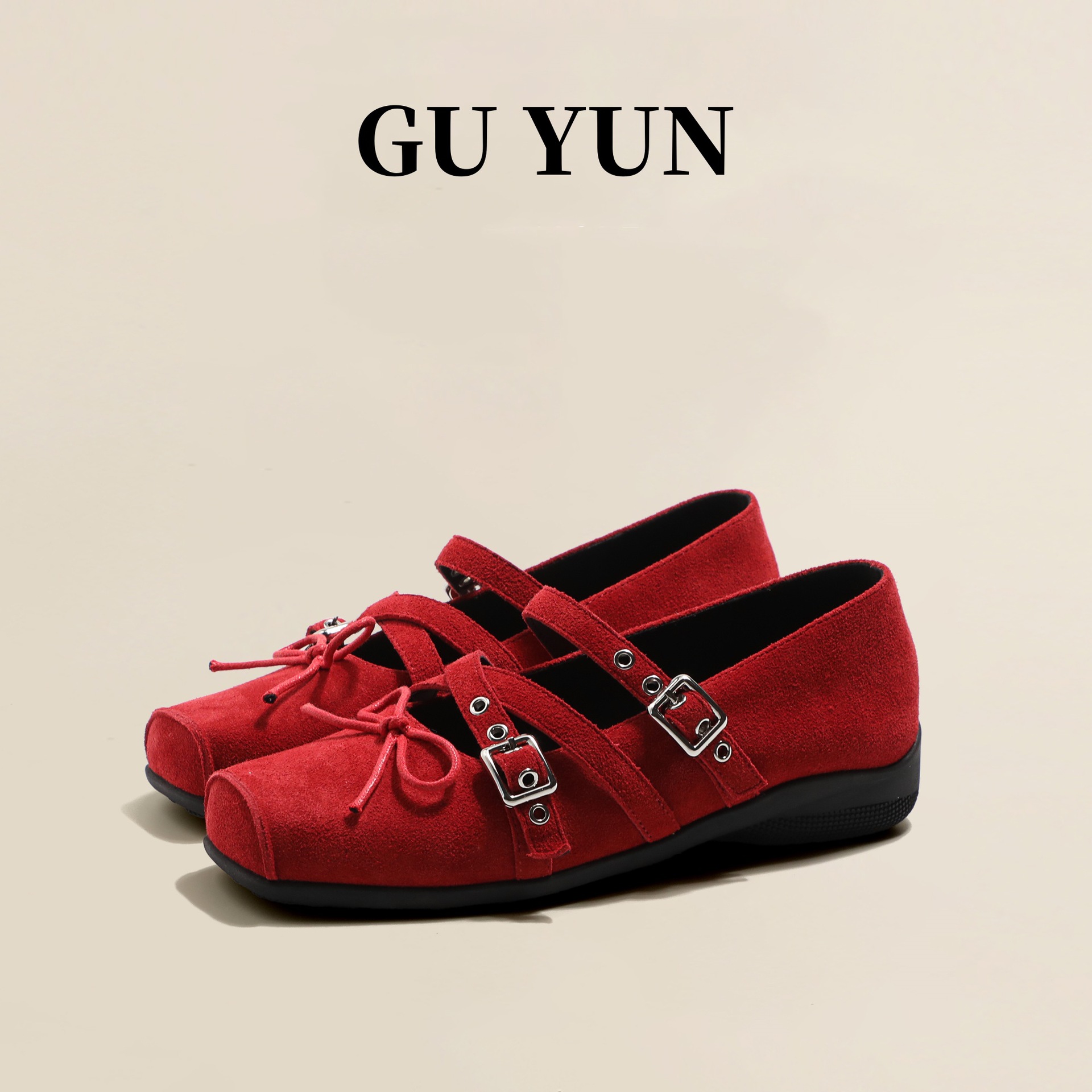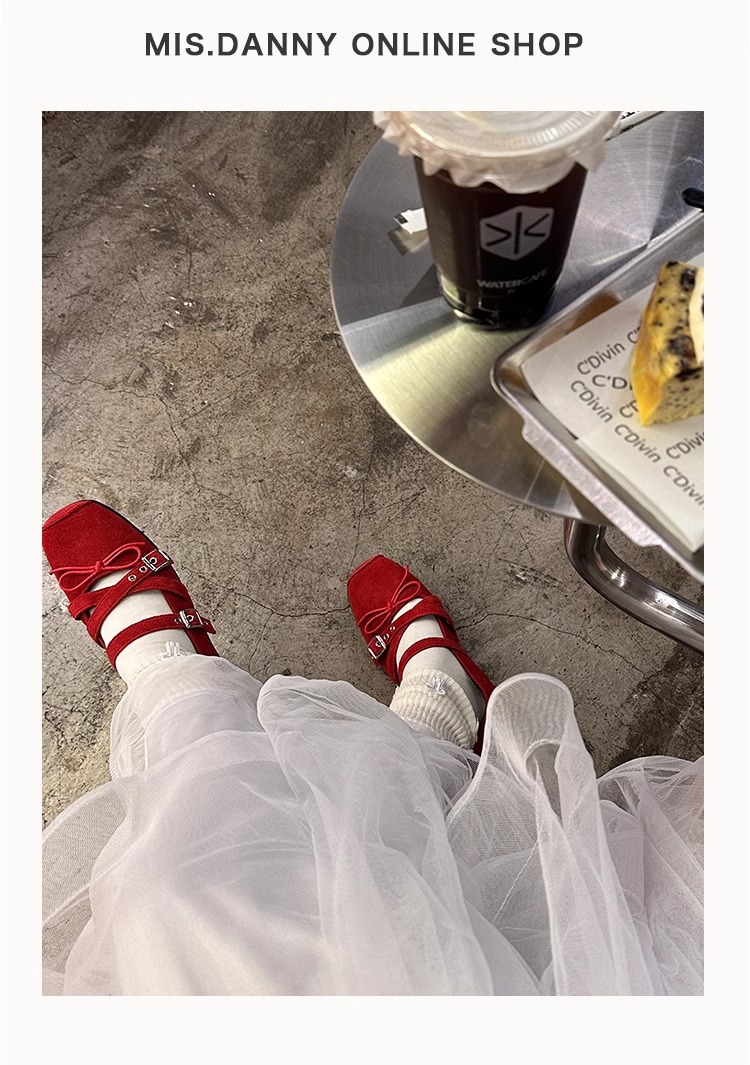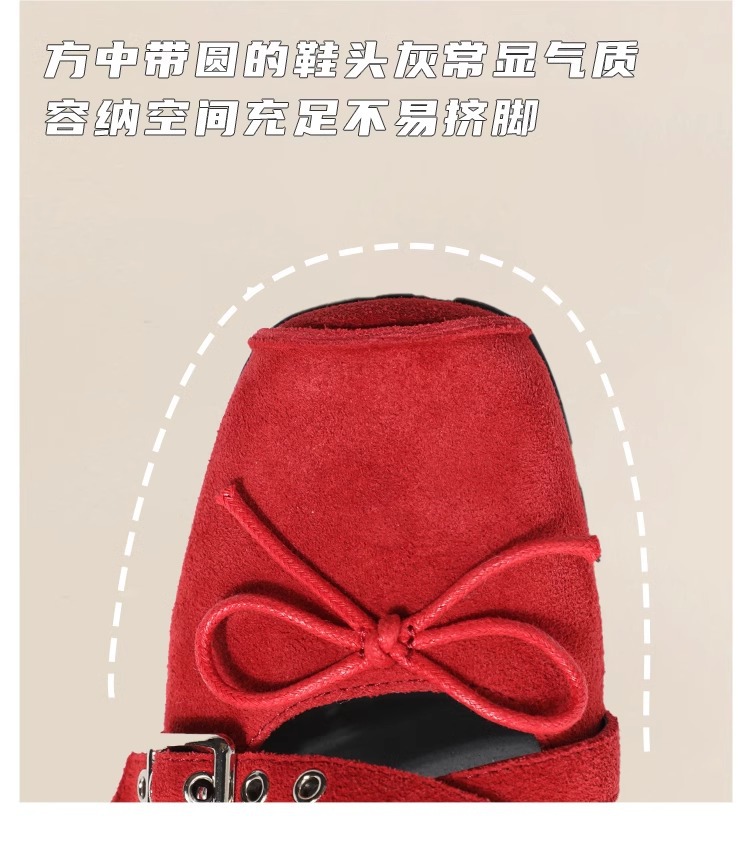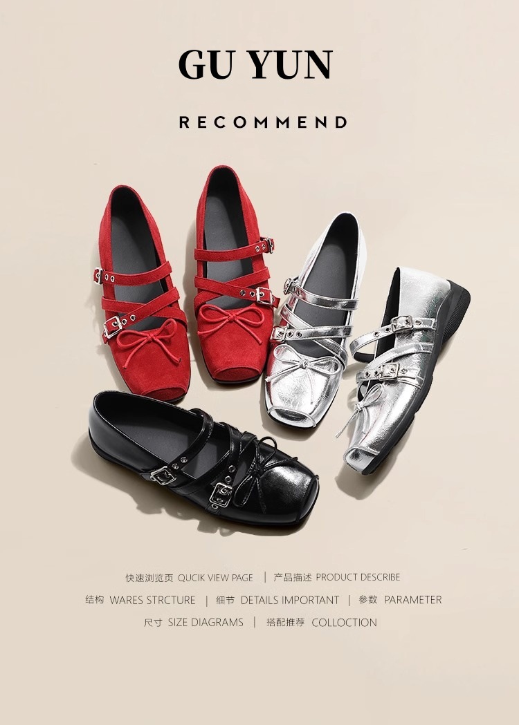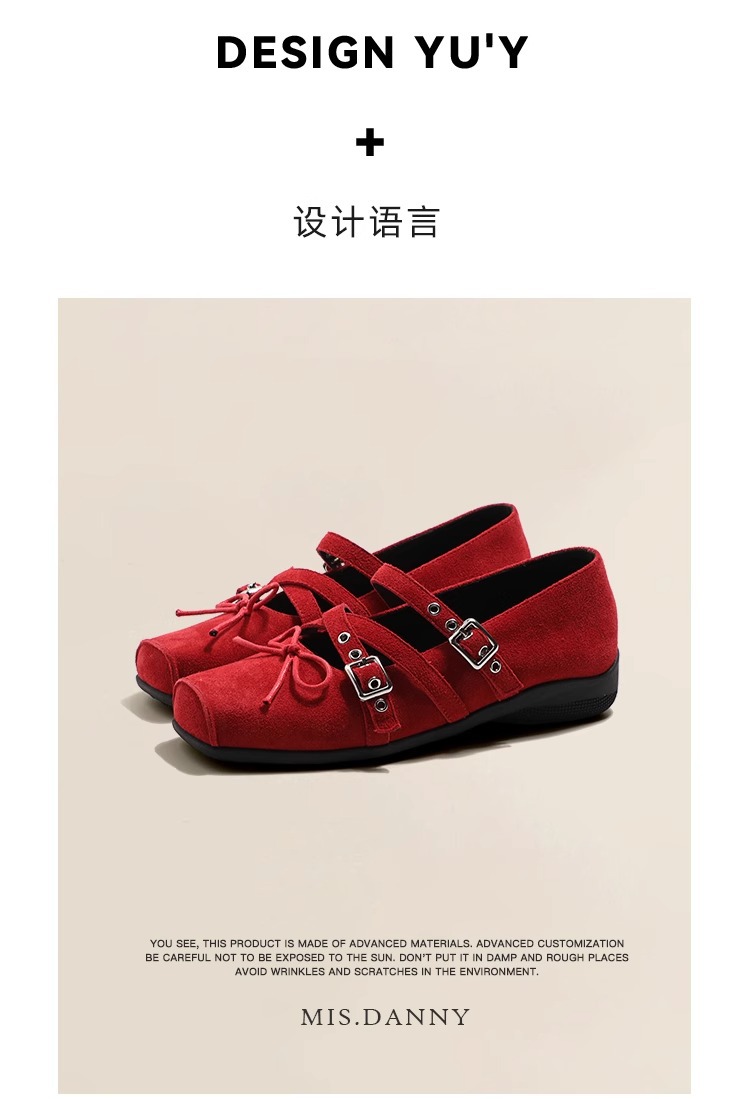 Cowhide 버전 ~ 원래 빨간 활 작은 신발 여성 봄과 여름 가죽 복고풍 얕은 리벳 발레 평평한 바닥