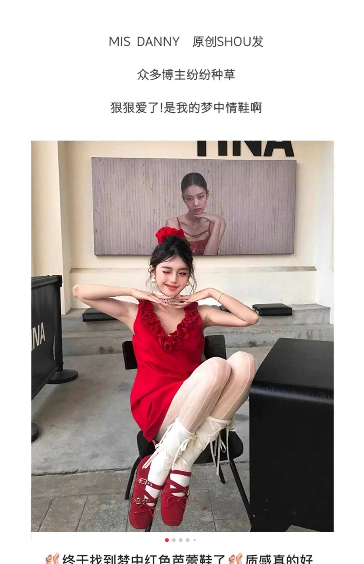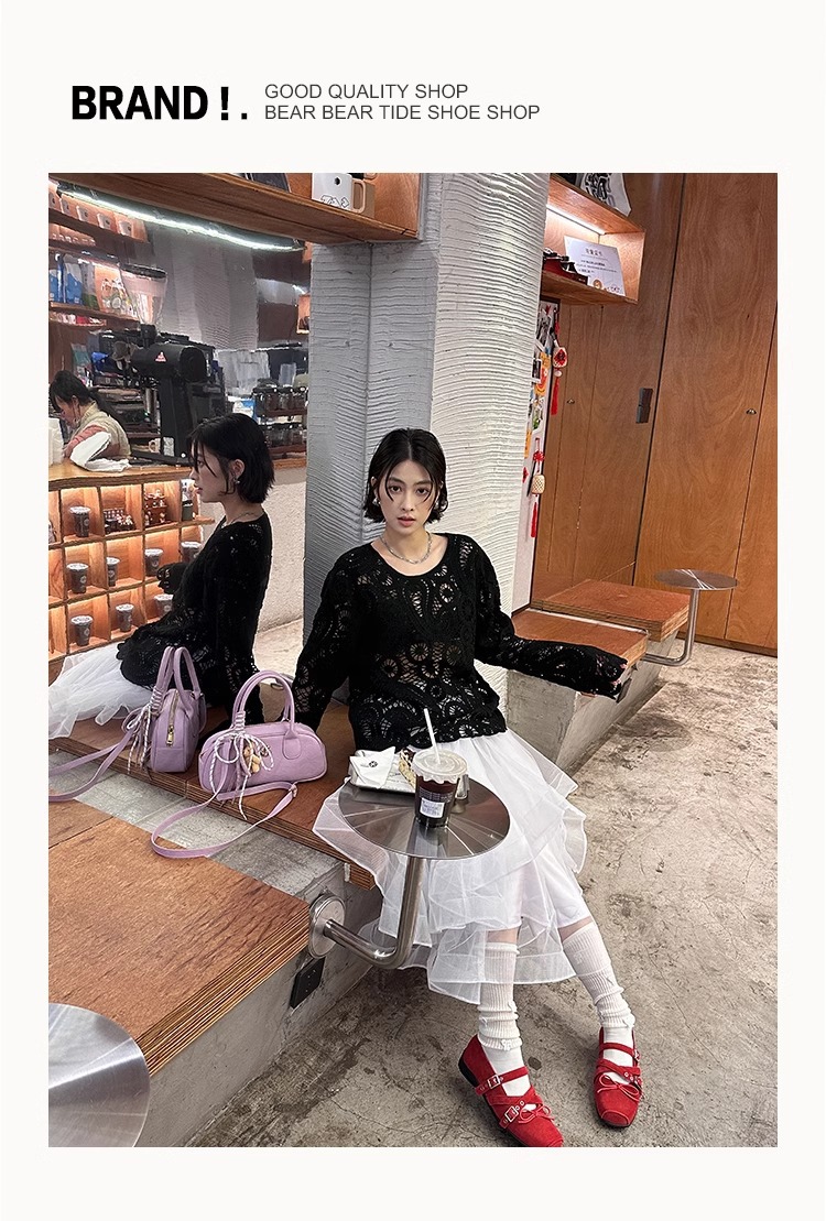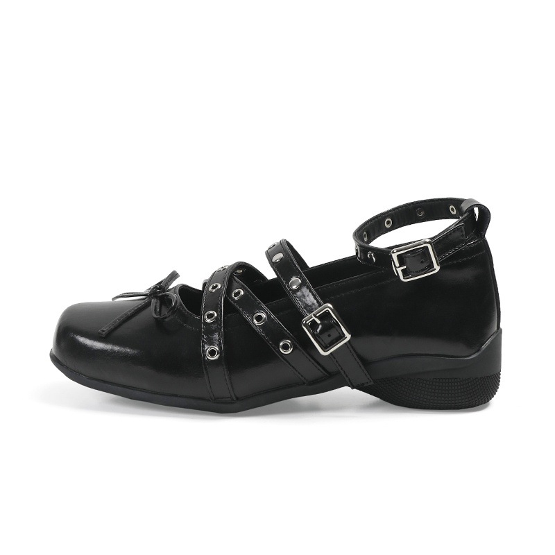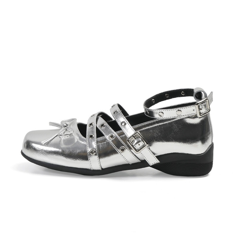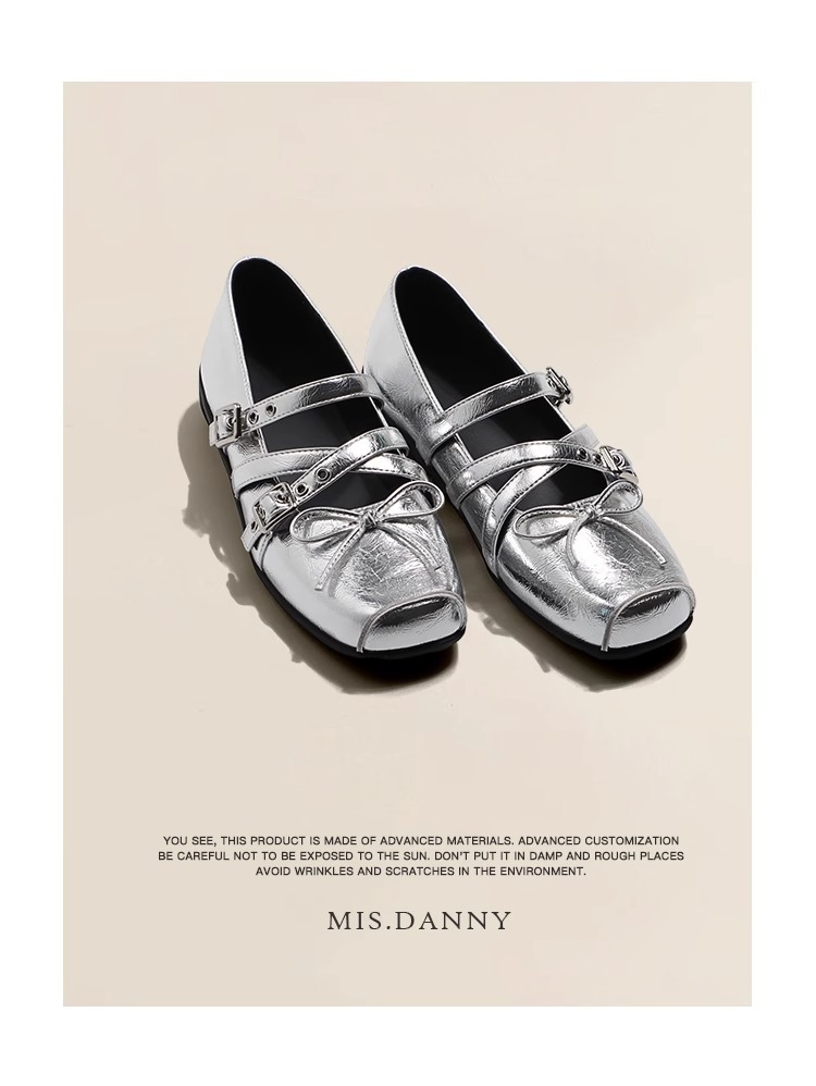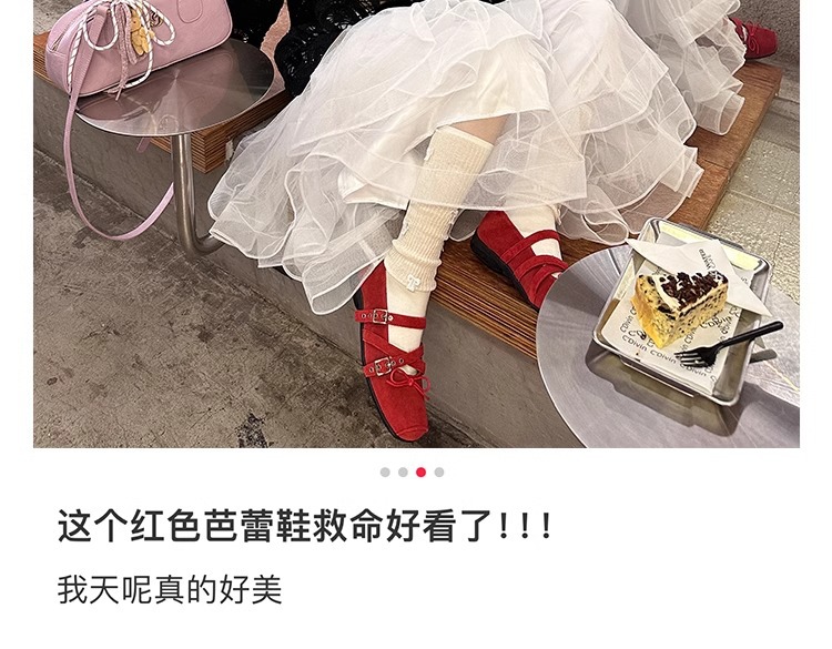 Cowhide 버전 ~ 원래 빨간 활 작은 신발 여성 봄과 여름 가죽 복고풍 얕은 리벳 발레 평평한 바닥스토어 가기