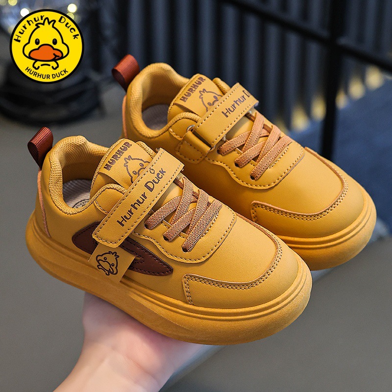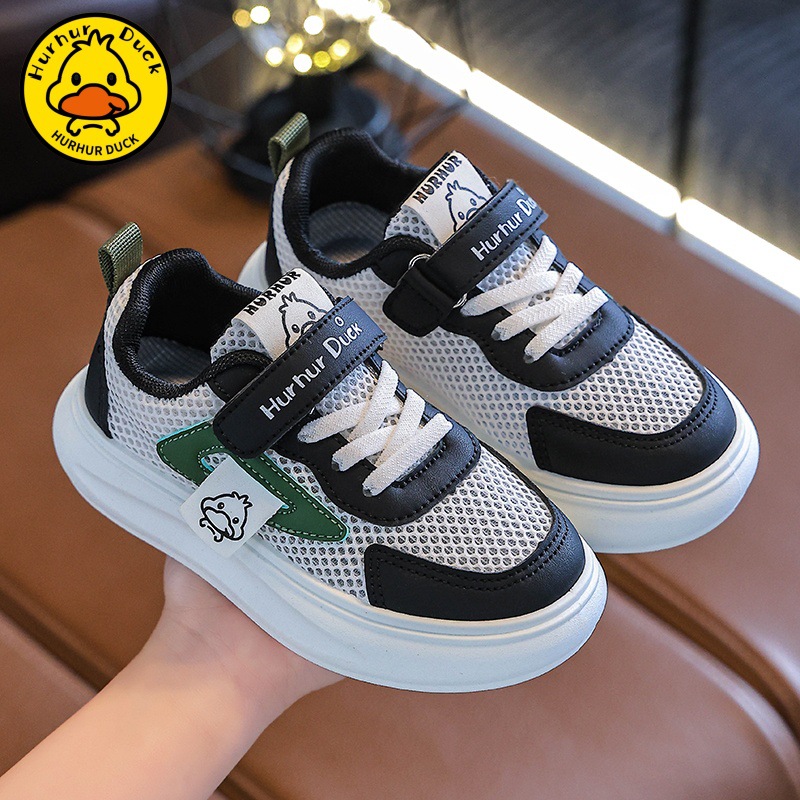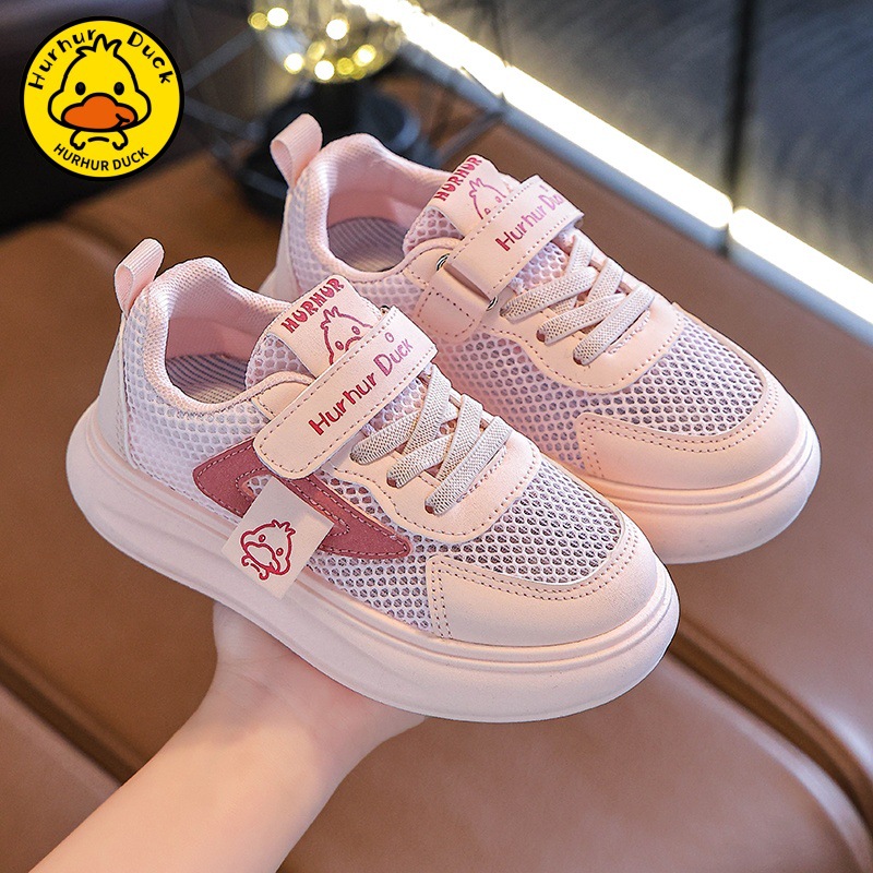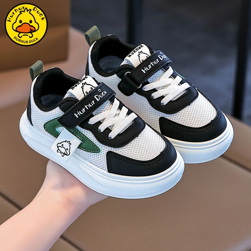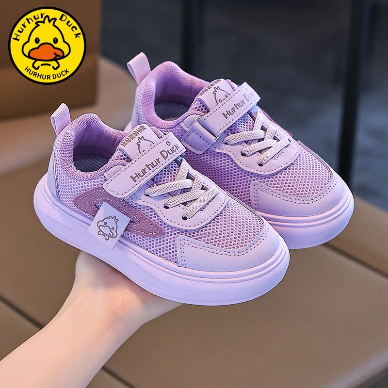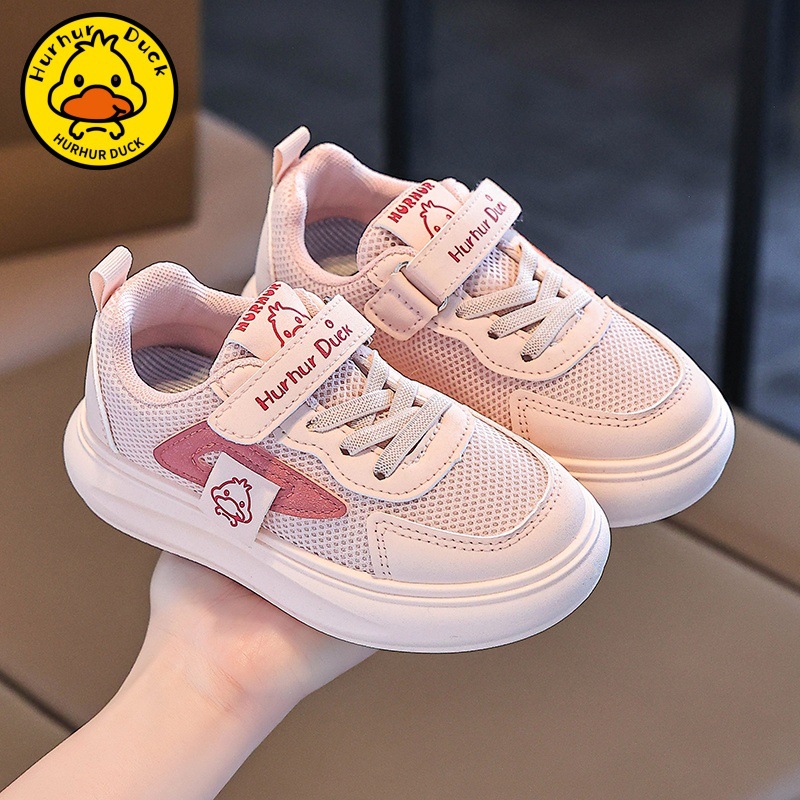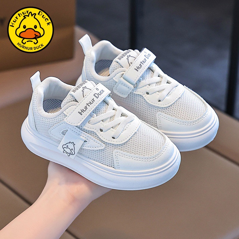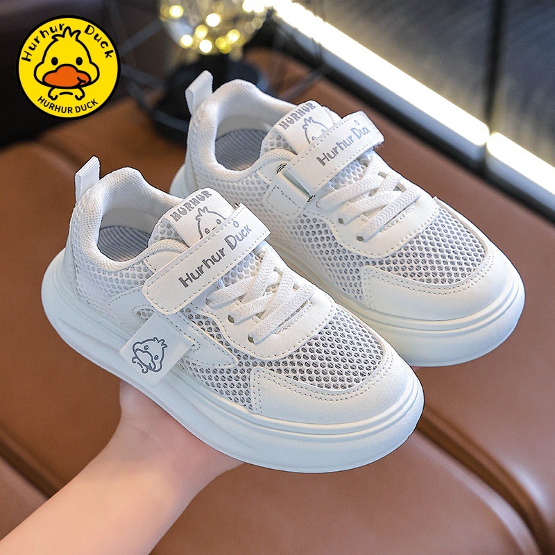 작은 노란 오리 어린이 흰색 신발 소녀 보드 신발 2025 새로운 봄과 가을 메쉬 통기성 소년을위한 흰색 운동화스토어 가기