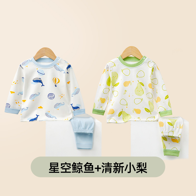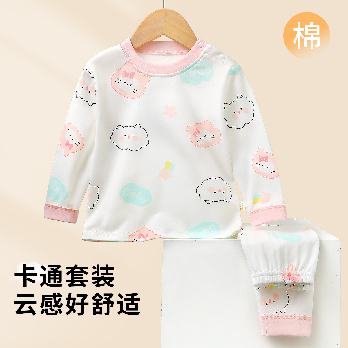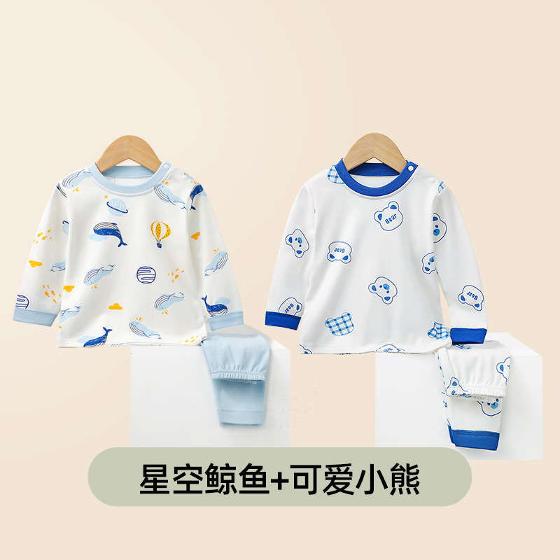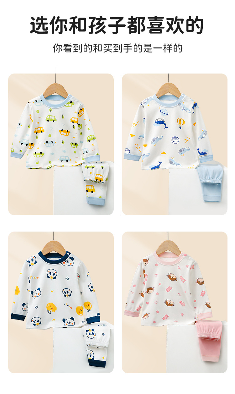 징치 아동용 가을옷 세트 순면 남아 여아 가을옷 가을바지 속옷 순면 가을 스타일 아기 속옷 세트스토어 가기