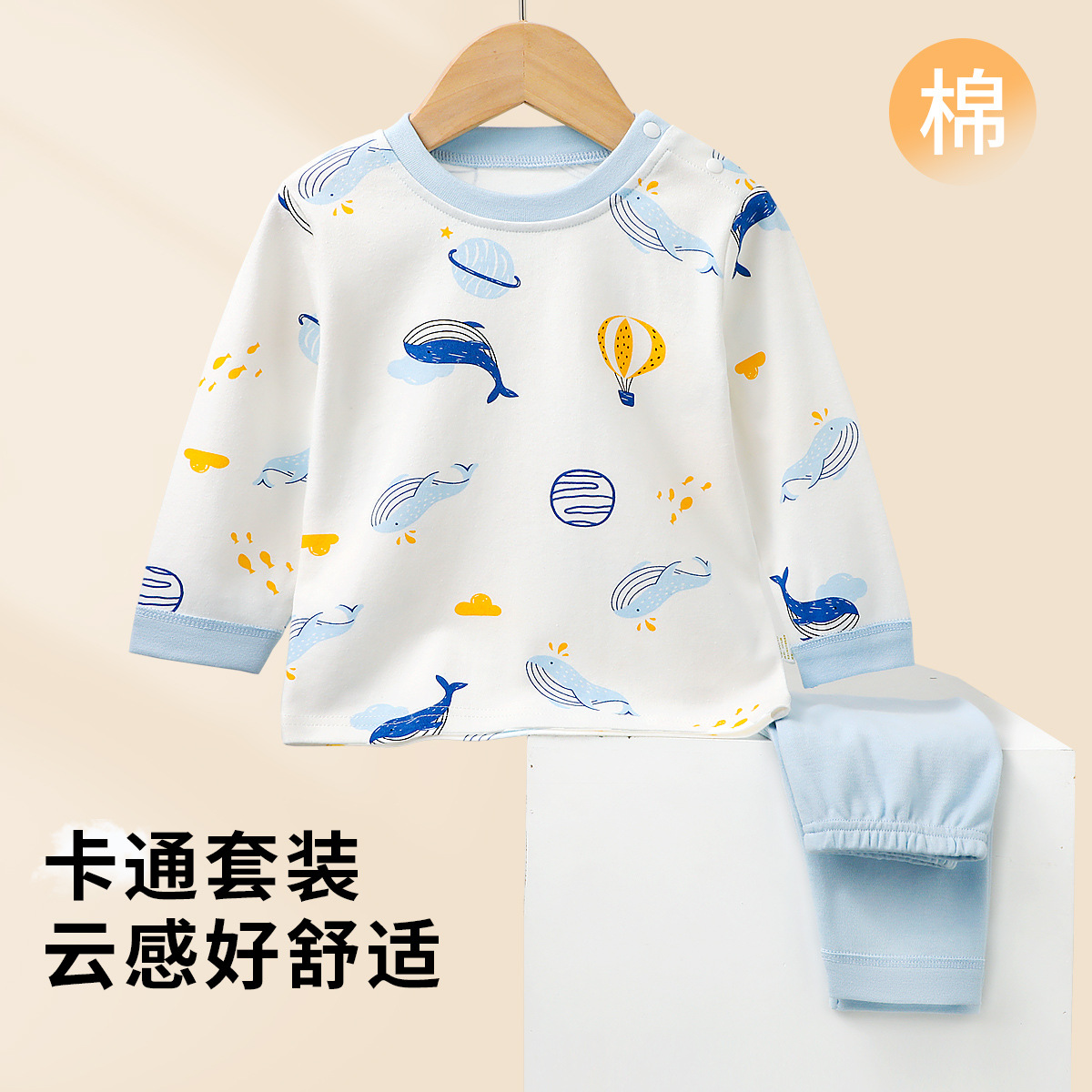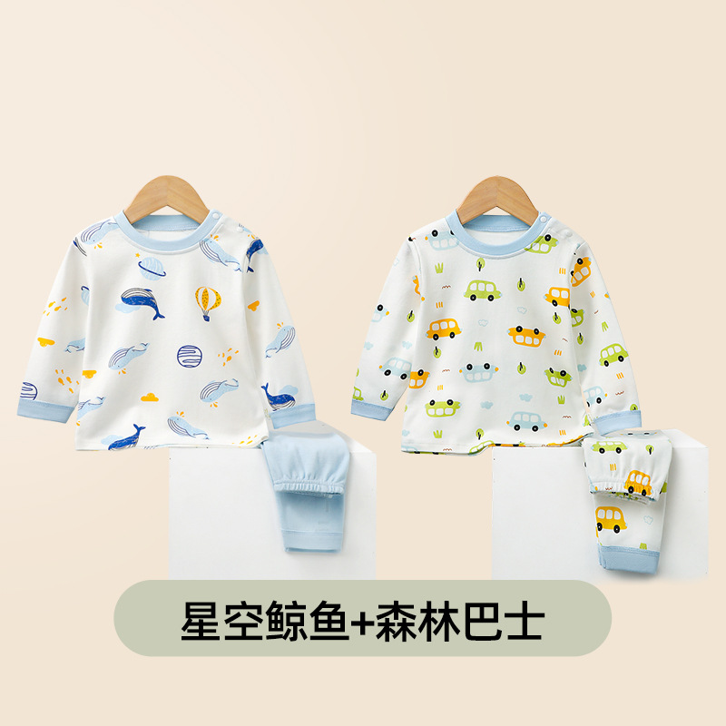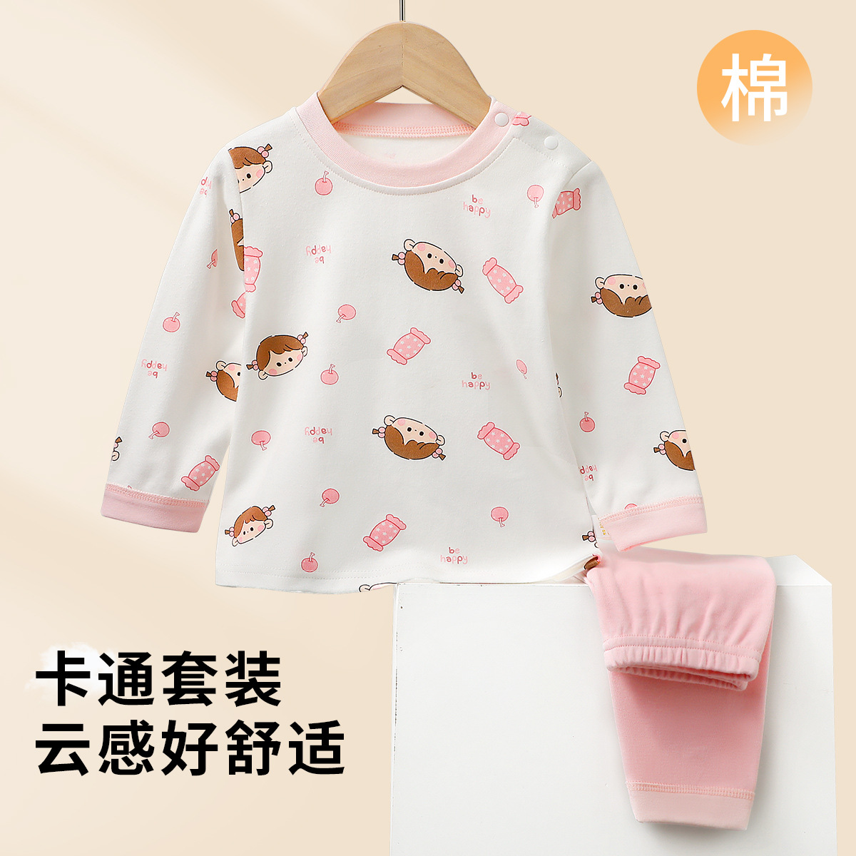 징치 아동용 가을옷 세트 순면 남아 여아 가을옷 가을바지 속옷 순면 가을 스타일 아기 속옷 세트스토어 가기