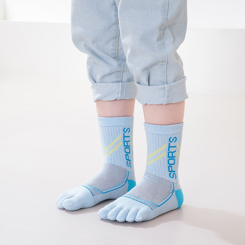 여름 초박형 어린이 순수 빗질면 땀 흡수 및 탈취제 뼈없는 중간 튜브 큰 어린이 소년 통기성 스플릿 발가락 양말