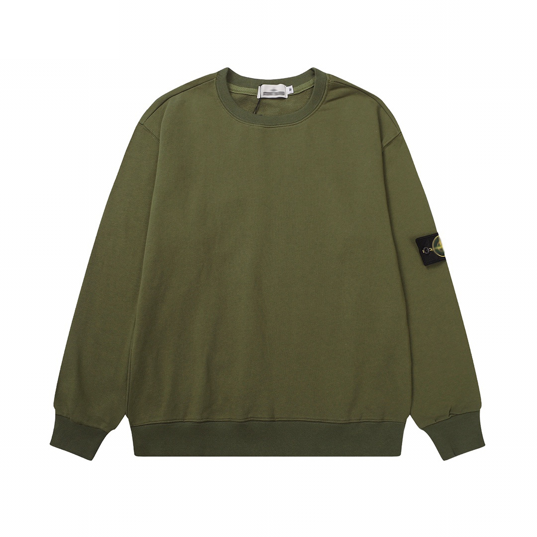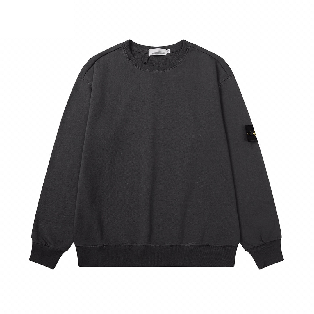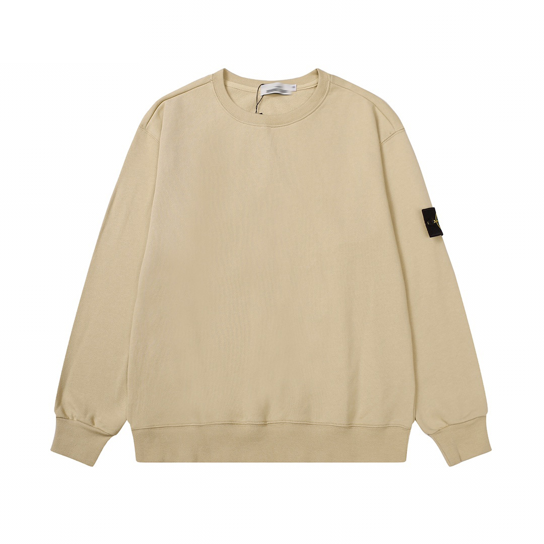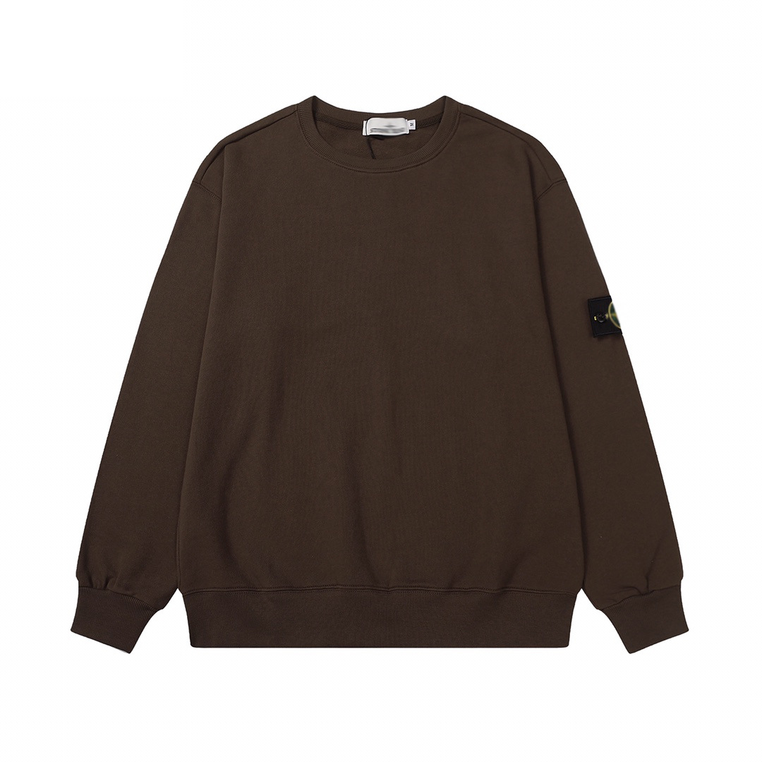 남성과 여성 섬 커플을위한 고품질 국경 간 클래식 스톤 솔리드 컬러 라운드 넥 배지 긴팔 스웨트 셔츠 올바른 버전스토어 가기