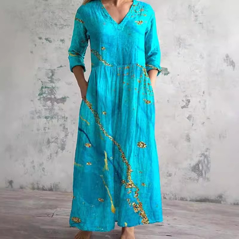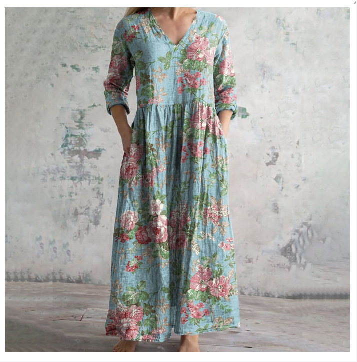 대외 무역 국경 2024 새로운 유럽과 미국의 3d 인쇄 아마존 유럽과 미국의 여름 도시 레저 느슨한 원피스 여성스토어 가기