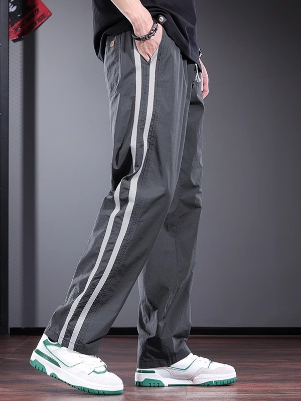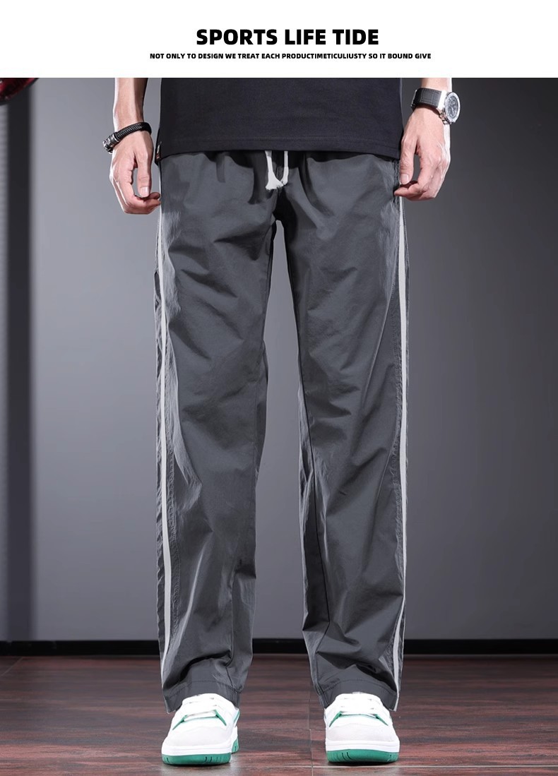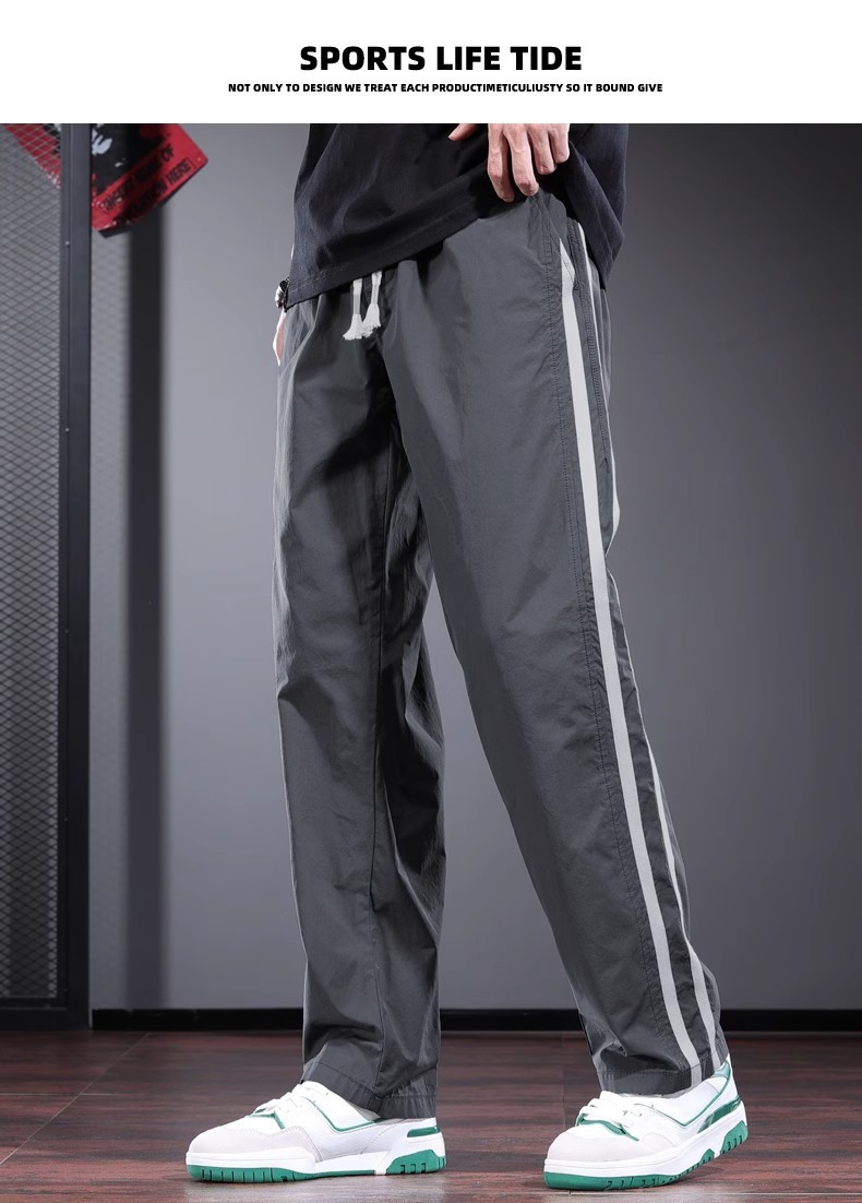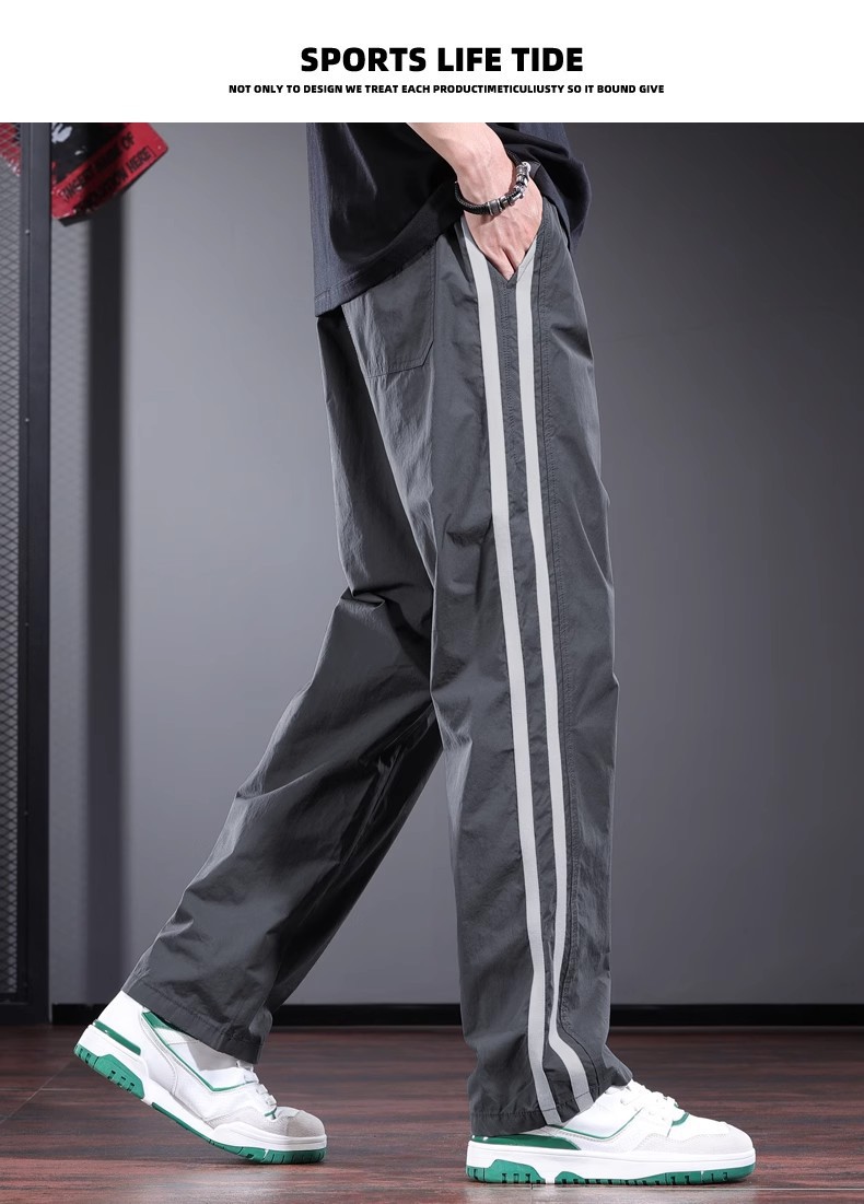 봄, 가을 남성용 아메리칸 스타일 엣지 스트라이프 캐주얼 팬츠 얇은 디자인 루즈 스트레이트 트렌디 블루 스포츠 바지스토어 가기