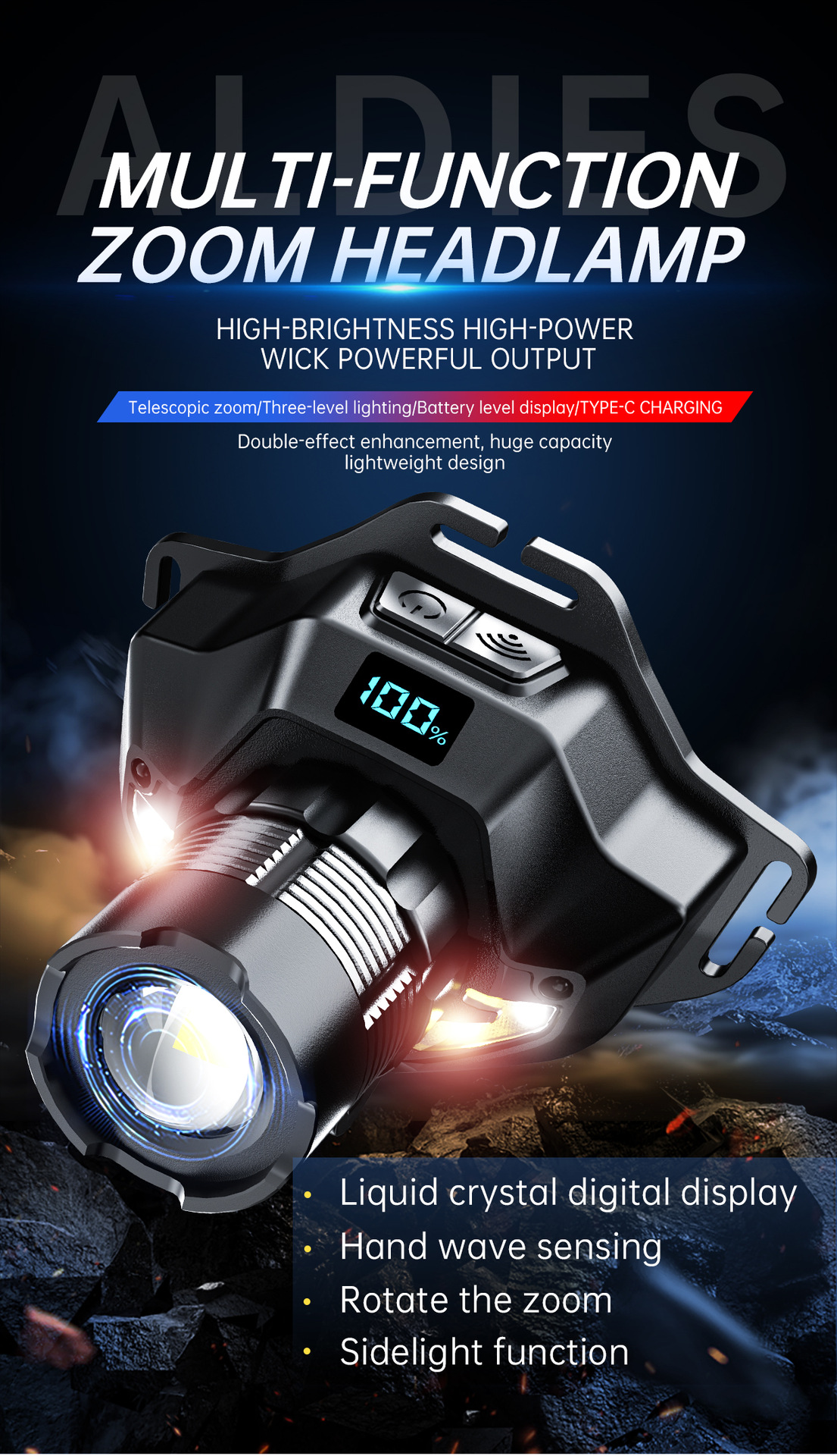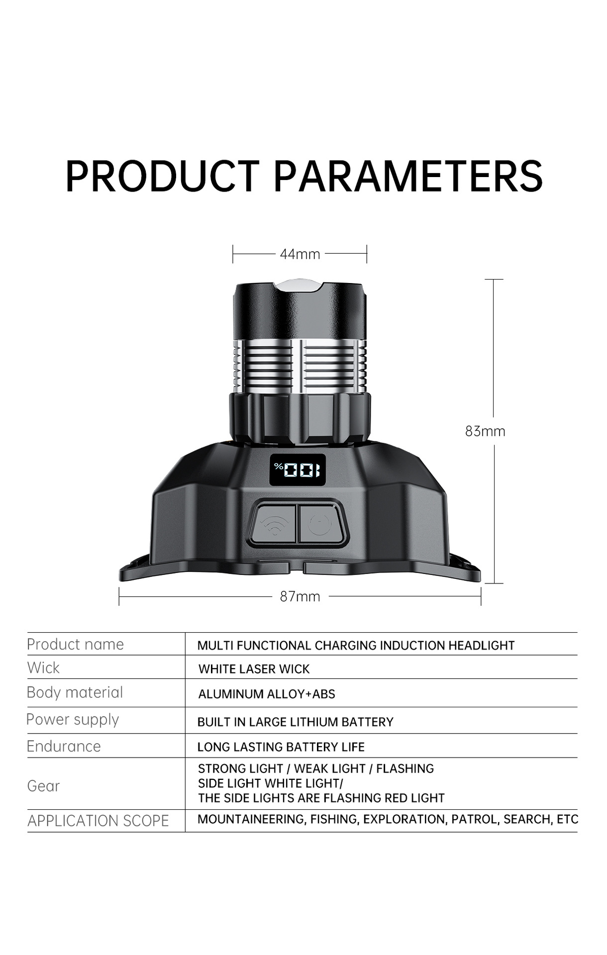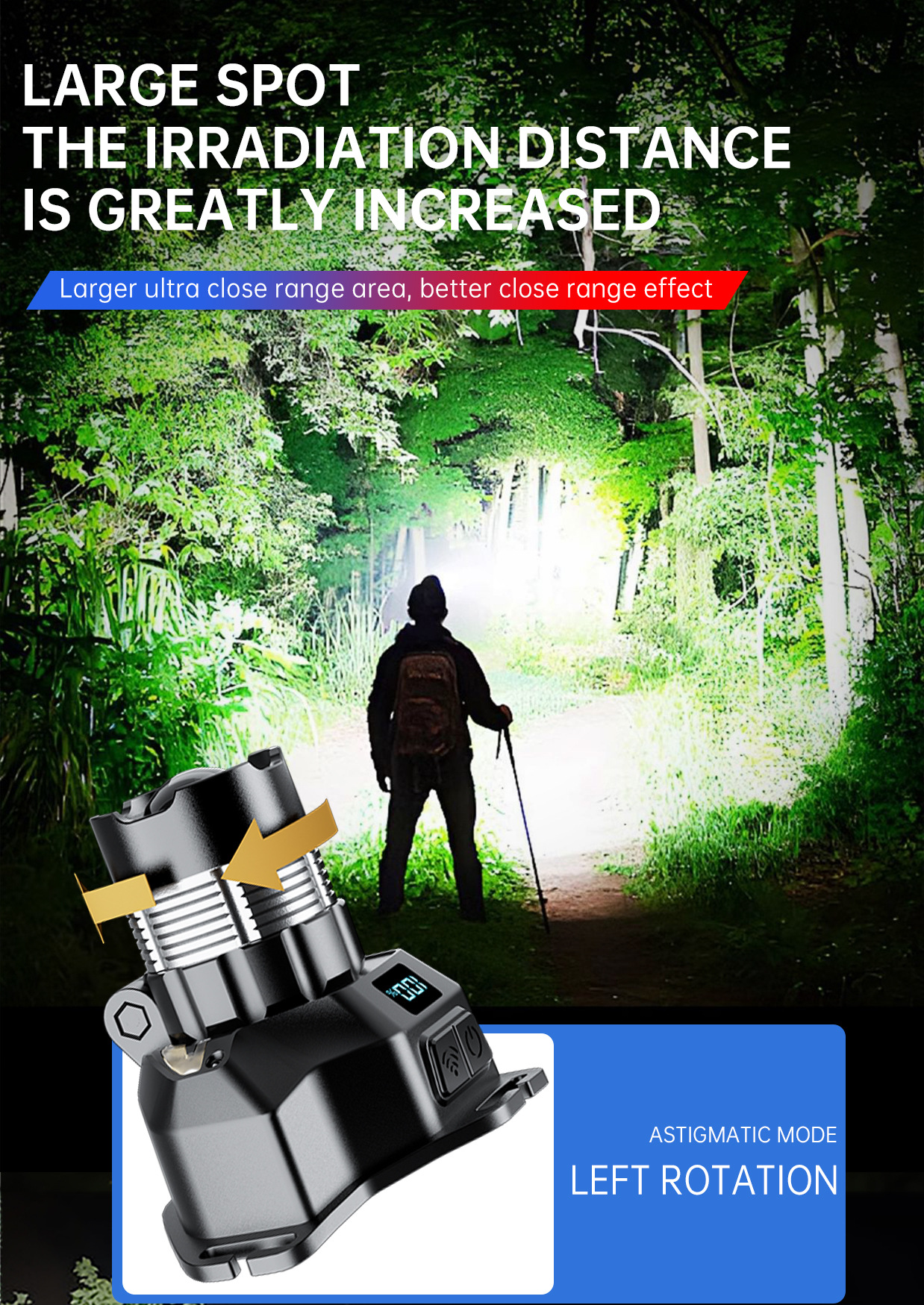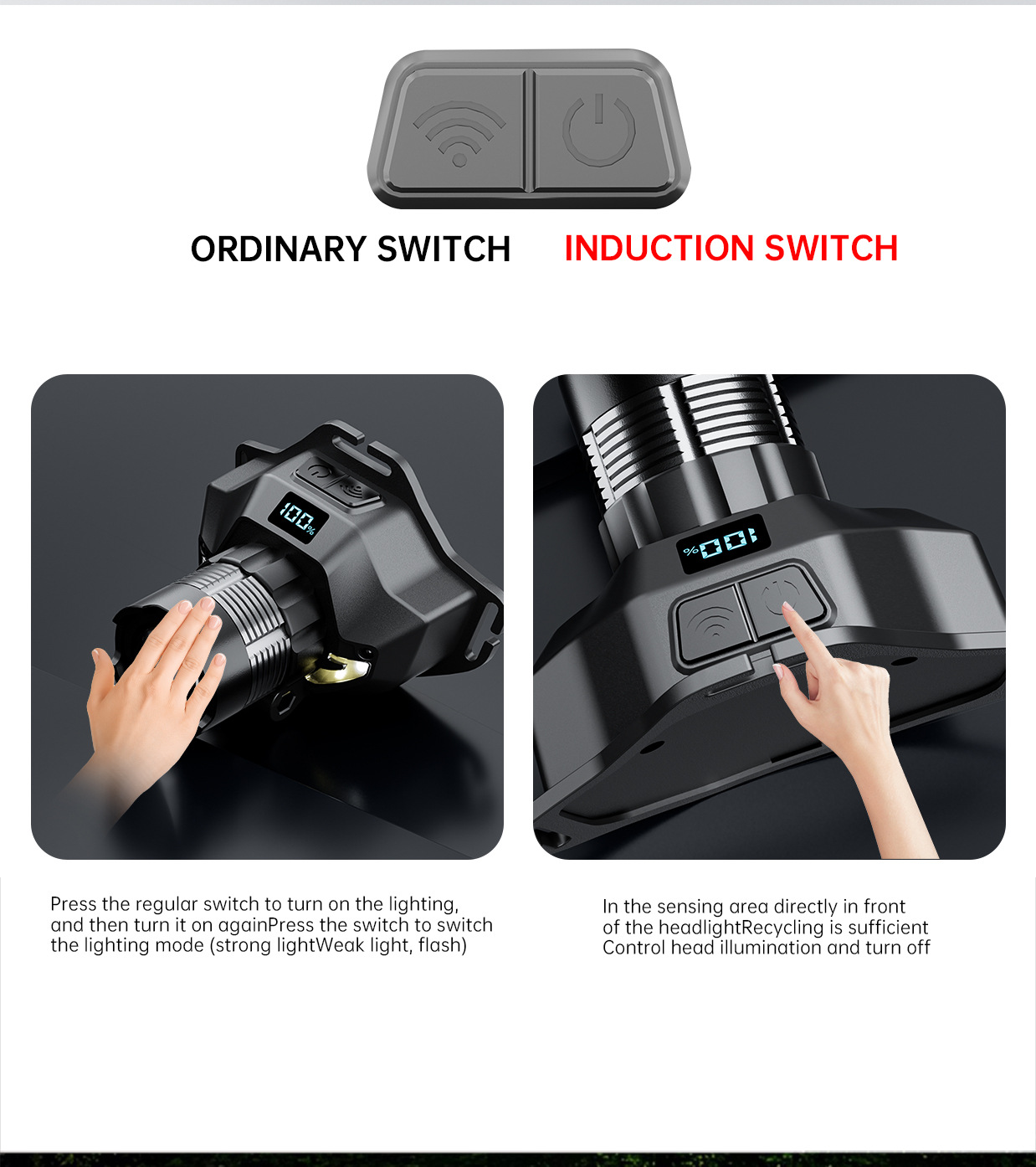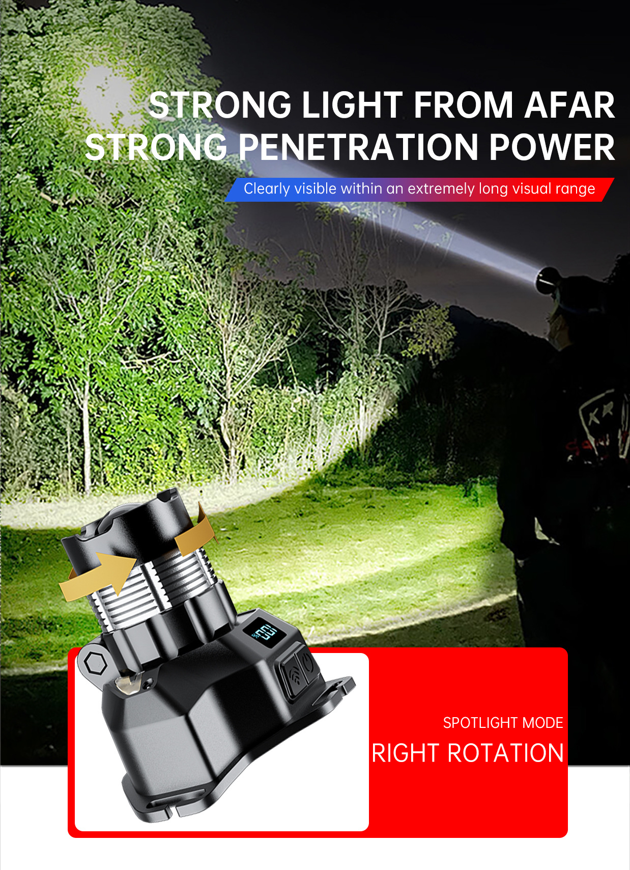 새로운 긴 내구성 밝은 빛 높은 루멘 헤드 램프 디지털 디스플레이 비상 야간 낚시 램프 충전식 헤드 장착 손전등